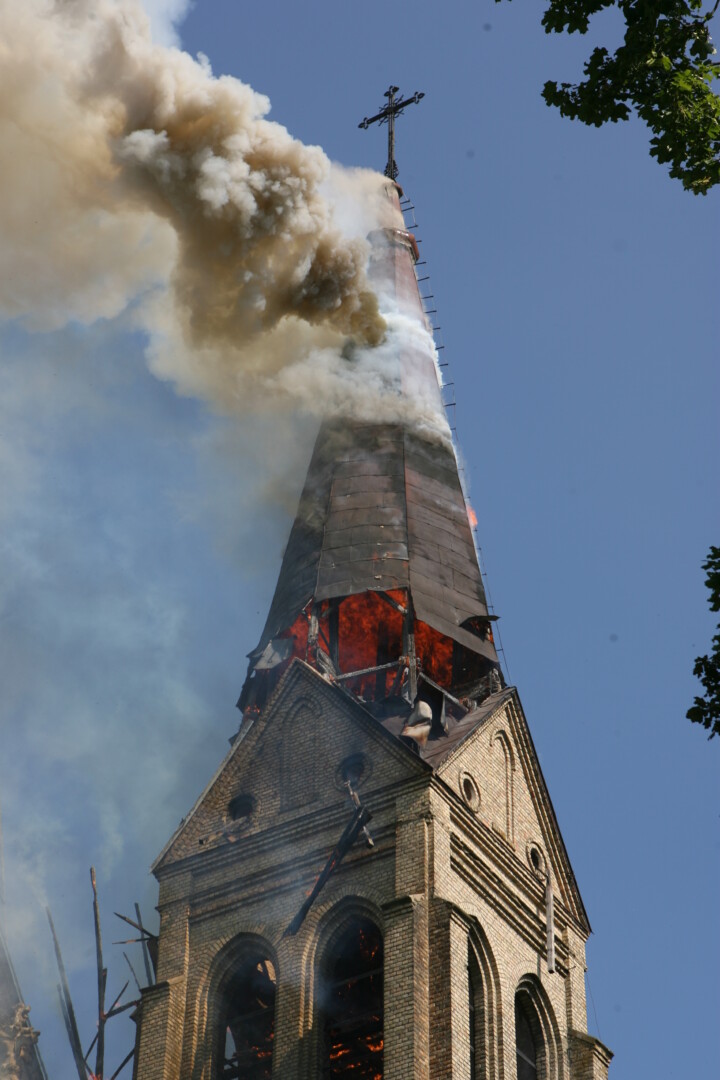 Minios žmonių važiavo į Panevėžio rajone esantį Naujamiestį apgailėti liepsnų siaubiamos 1908-aisiais statytos Šv. Apaštalo evangelisto Mato bažnyčios.