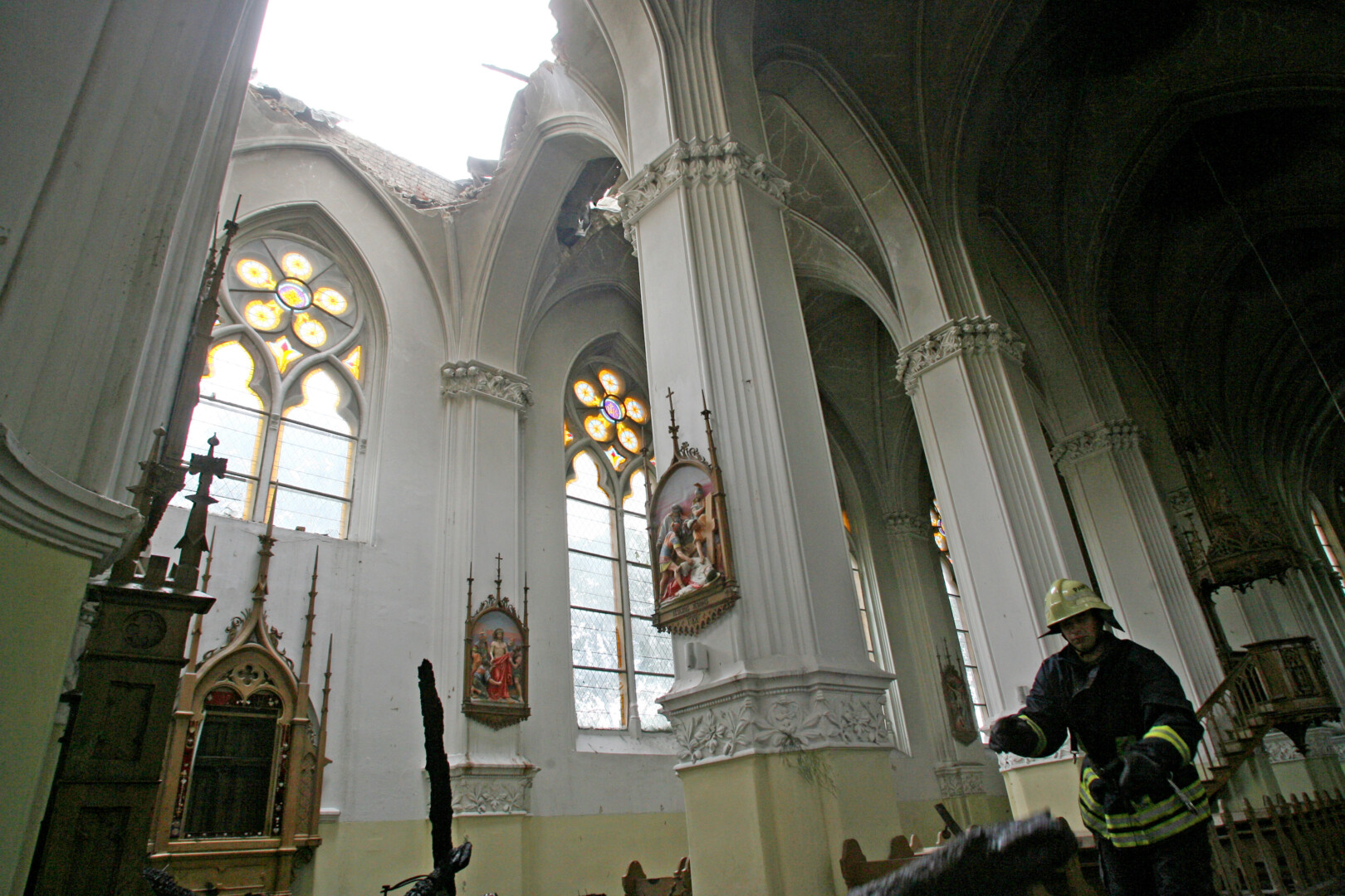 Kai ugnyje paskendę griuvo bažnyčios bokštai, atrodė, kad atsivėrė pragaras. Gaisre nukentėjo keturi žmonės, iš jų – trys ugniagesiai. Tarp sužalotųjų dviem prireikė rimto gydymo ligoninėje.
