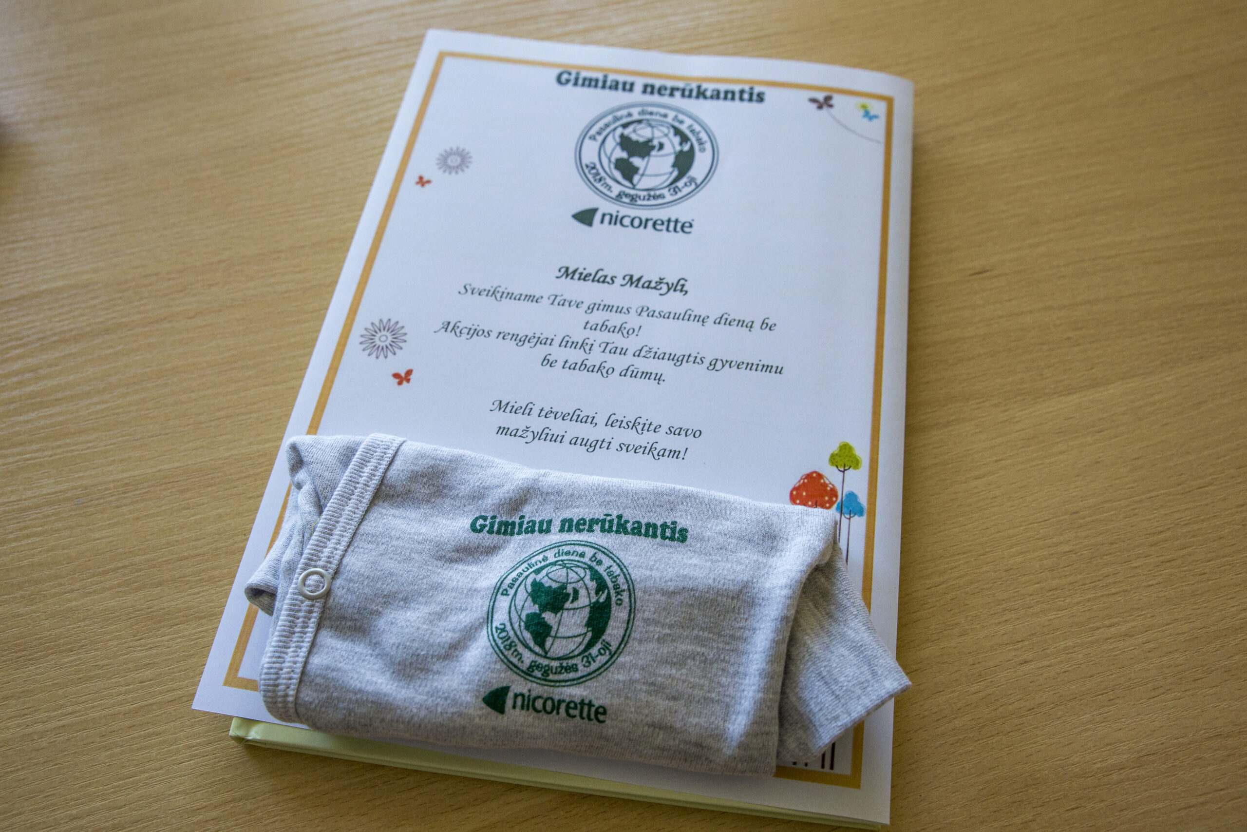 Gegužės 31-oji – Pasaulinė diena be tabako. Šią dieną Panevėžio ligoninėje gimė šeši vaikai, kuriems gimtadienį primins simboliniai marškinėliai su užrašu „Gimiau nerūkanti (-is)“.