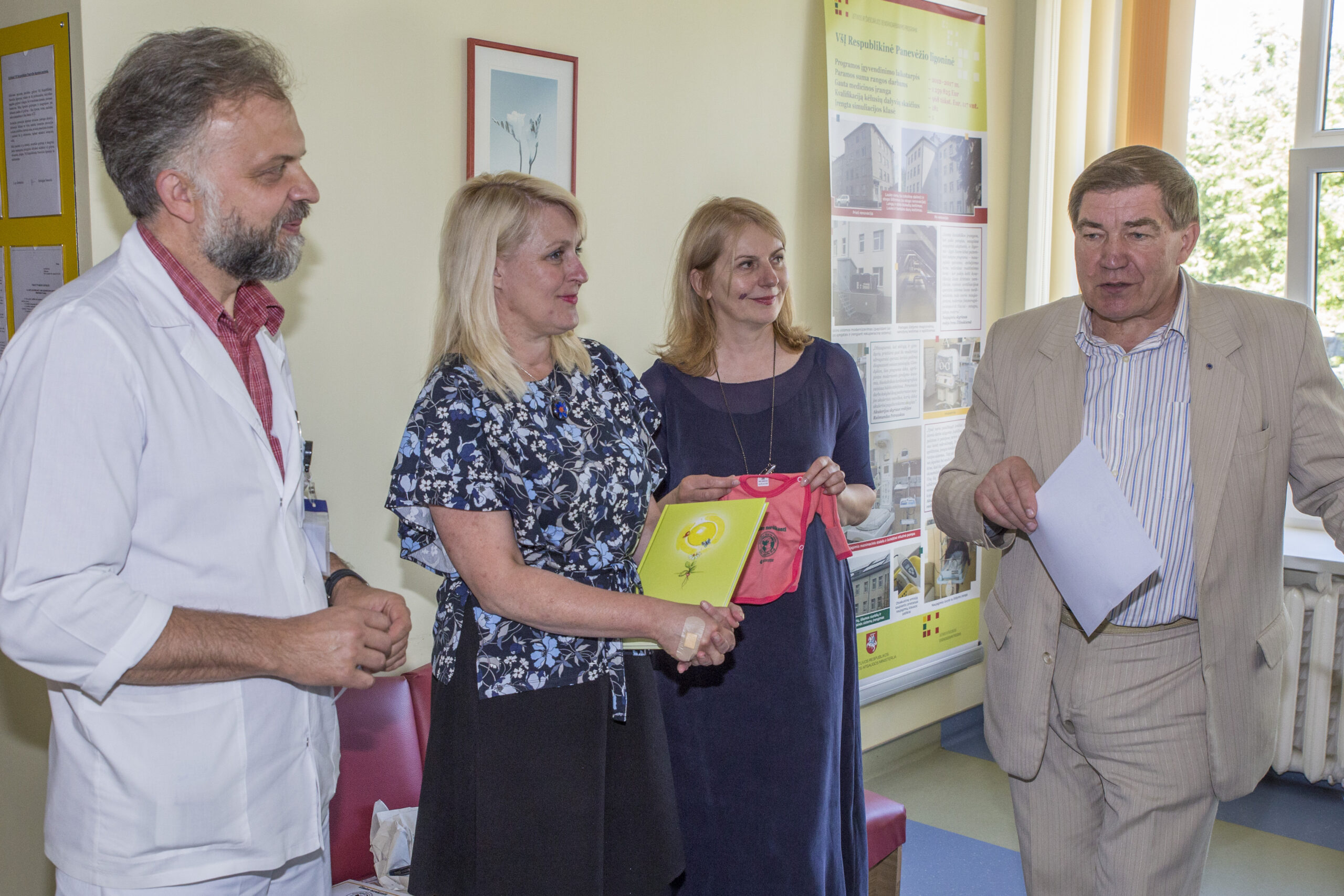 Spalvotus drabužėlius prieš dieną gimusiems mažyliams penktadienį dalijo Panevėžio miesto visuomenės sveikatos biuro specialistai. Jie kartu su Panevėžio miesto mero pavaduotoju Petru Luomanu aplankė visus Gimdymo skyriuje tą dieną krykštavusius naujagimius: keturis berniukus ir dvi mergytes.