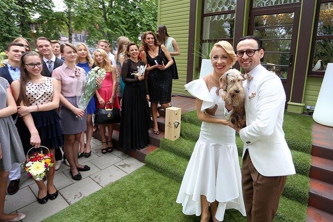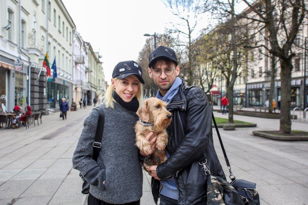 – Kaip čia atsakyti, neprisimenu, ką esame anksčiau tuo klausimu kalbėję (juokiasi). Nebuvo didelės romantikos. Štai šitas šuo (rodo į šiurkščiaplaukį taksą Donį) yra mano dovana ir pasipiršimo simbolis. Atėjo laikas, supratome, kad reikia tai padaryti. Kartu nusprendėme ir surengėme šventę. To per daug nesureikšminu. Aš ir žiedą nešioju ne ant piršto, o čia, arčiau širdies (ištraukia iš po marškinėlių grandinėlę su žiedu). Lina žiedą nešioja ant rankos, bet irgi ne visada. Jai tai kaip aksesuaras.