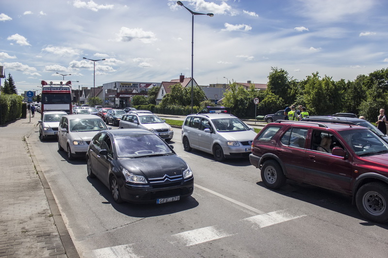 Šiandien apie 13.30 val. Klaipėdos ir Nemuno gatvių sankirtoje susidarė didelė automobilių spūstis.