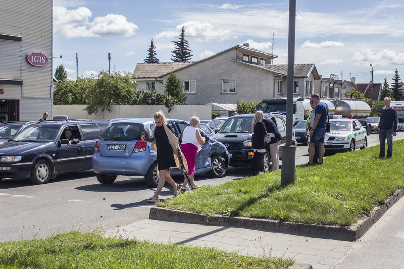 Mat čia eismo juostų nepasidalijo mėlynas „Hyundai“ ir sidabrinis „Volkswagen“. Negana to, nukentėjo nieko dėta „Toyota“.