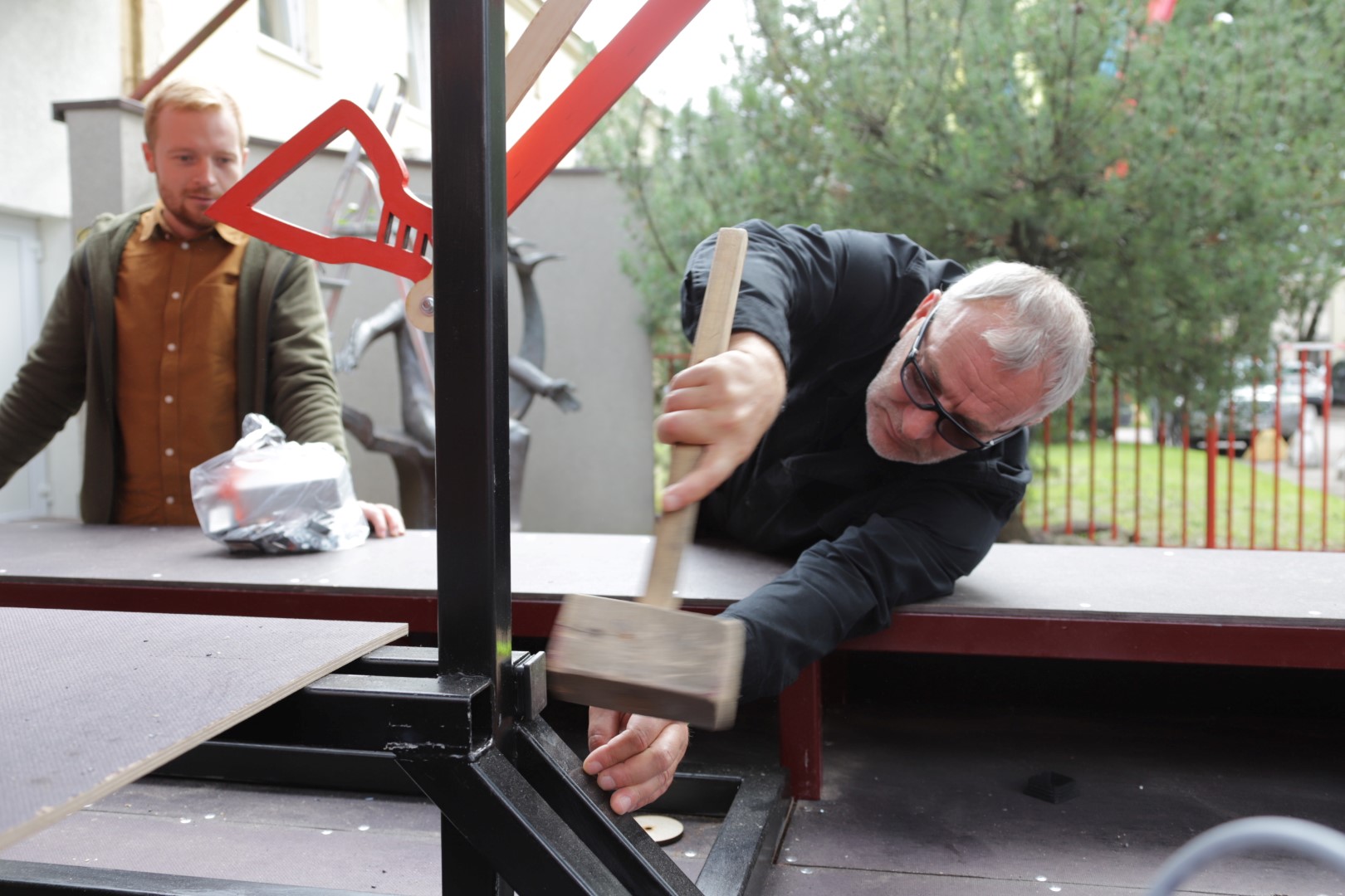 Jau dabar smalsuoliai traukia į teatro kiemelį apžiūrėti kad ir nebaigtos instaliacijos, o visu gražumu ji bus pristatyta miesto gimtadienyje Laisvės aikštėje.