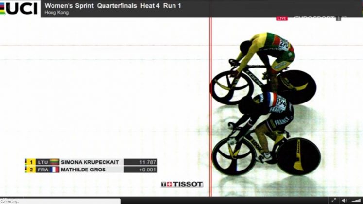 Honkonge vykstančiame 114-ame pasaulio dviračių treko čempionate ketvirtadienį startavo trys Lietuvos atstovai. Simona Krupeckaitė iškopė į moterų sprinto pusfinalį.