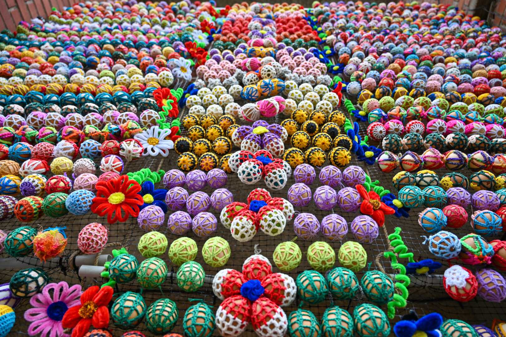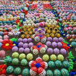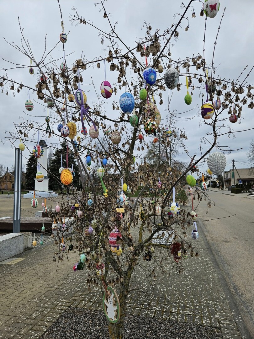 „Kiekvienas unikalus, ne iš parduotuvės nupirktas, o rankų darbo. Neskaičiavome, kiek jau turime, bet būtų įdomu suskaičiuoti“, – pasakoja K. Juškaitė. Pavasario šaukliai margučių medžiai Raguvą puoš iki Atvelykio.