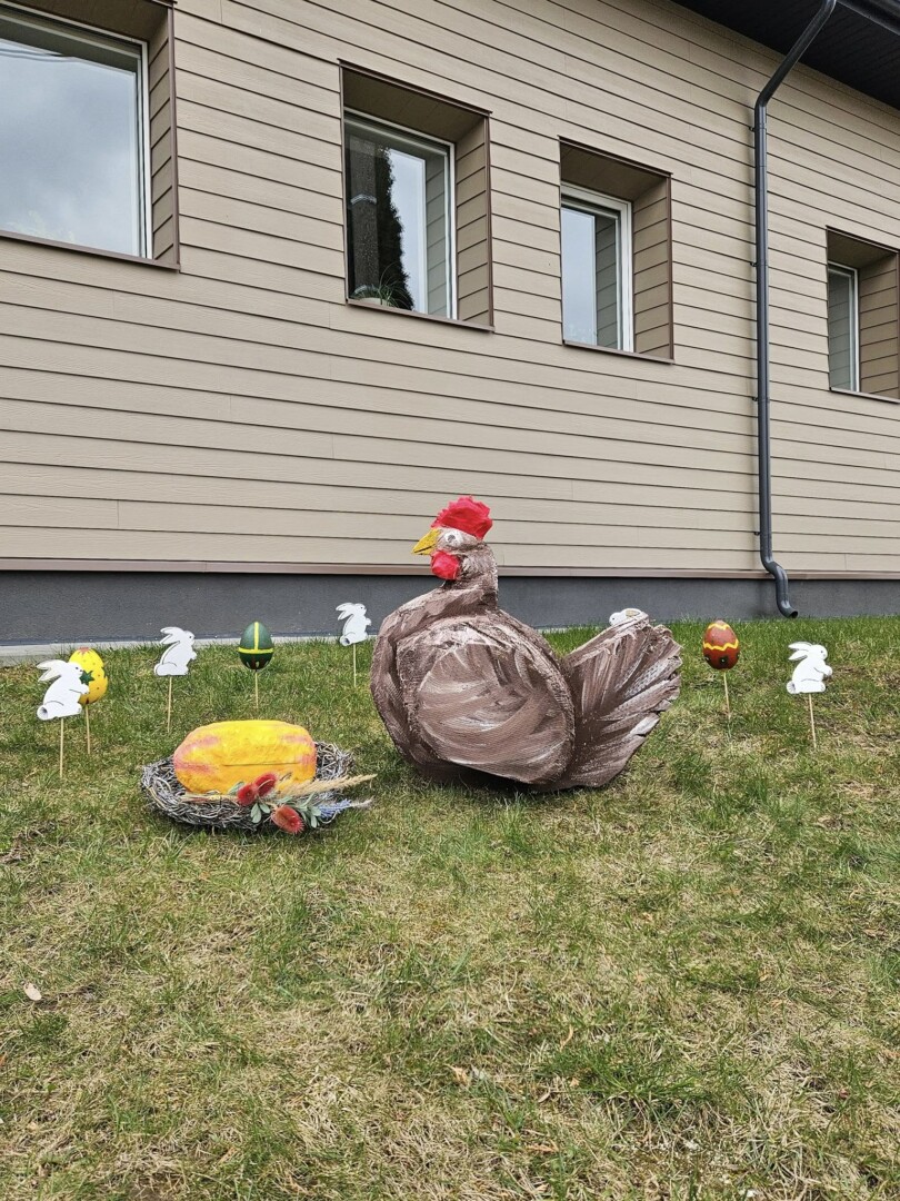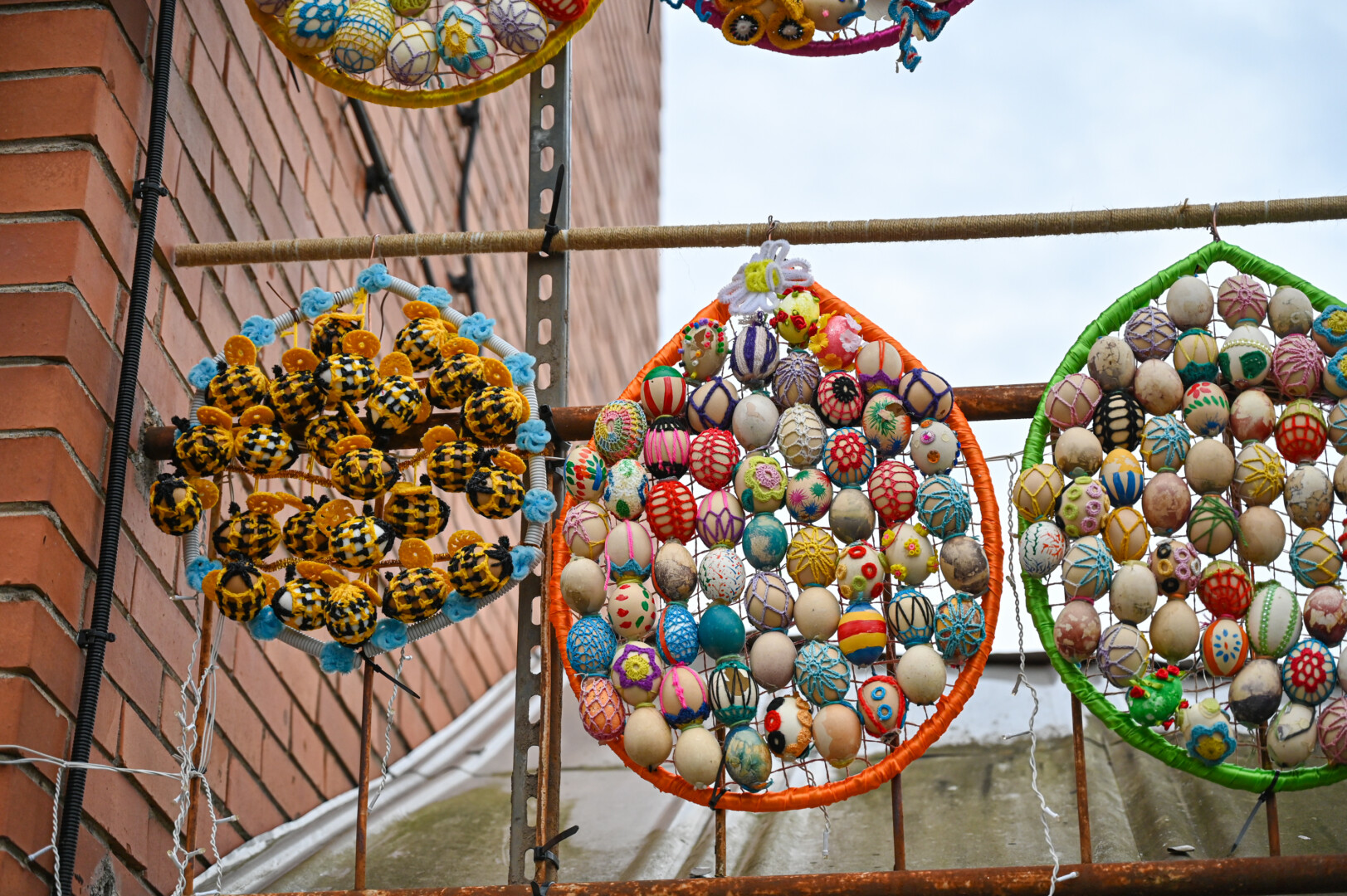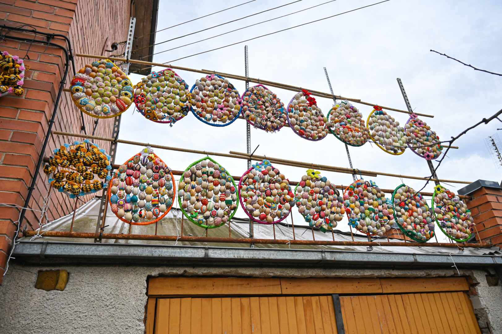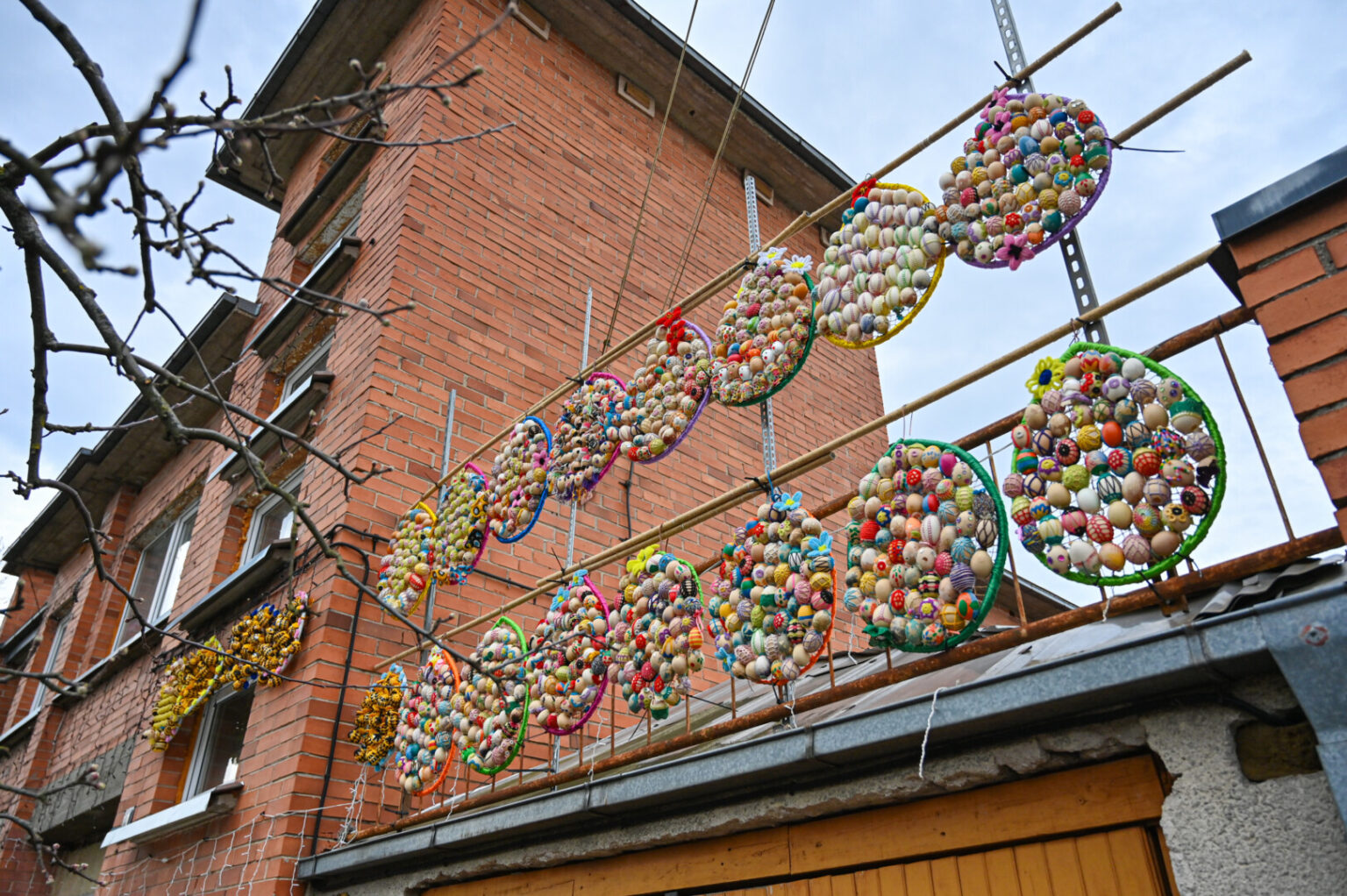 „Po Atvelykio gal dar kokią savaitę pakabės. Norisi, kad kiemą puoštų kuo ilgiau, mums patiems labai gražu“, – šypsosi jau ne vienerius metus tokiomis puošmenomis Panevėžį garsinanti A. Ladavičienė.