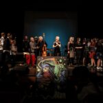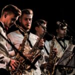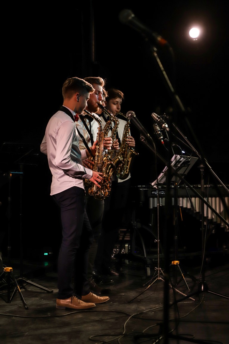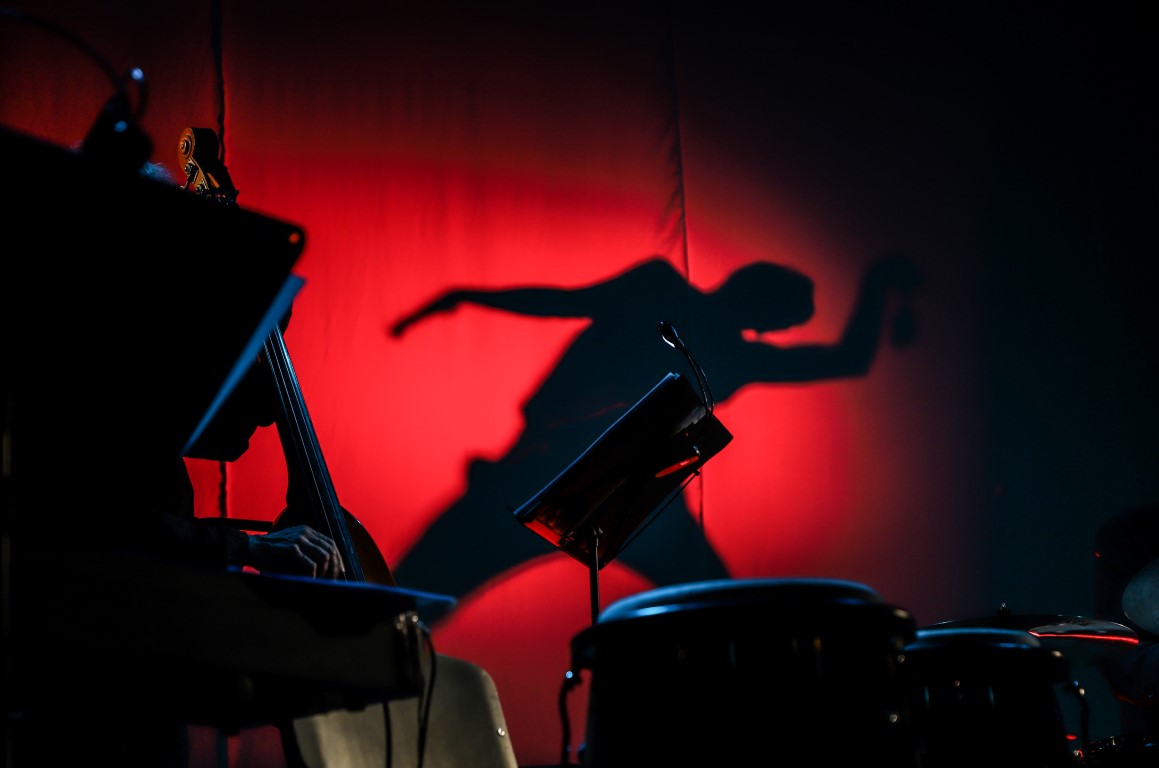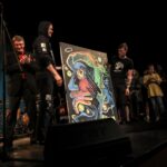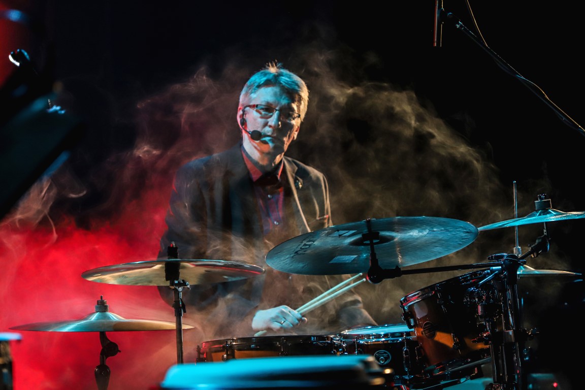 Scenoje džiazavo ne tik mokiniai ir jų mokytojai. Prie programos prisijungė ir teatro aktoriai bei dailininkas, scenografas, fotografas Arvydas Gudas. Jis, skambant džiazo melodijoms, kūrė paveikslą, kurį paviešino renginio pabaigoje.