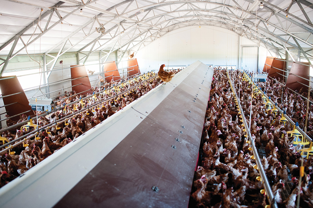 Tiesa, vištų gyvenimo rutina nustatyta iš anksto ir automatizuota, tad įprastai žmogui net nereikia į ją kištis. Apšvietimas reguliuojamas ‒ intensyvinamas arba mažinamas ‒ taip, kad būtų sukurtas vištų reprodukcijai tinkamas paros ritmas. Paukščiai patys pajunta, kada laikas grįžti namo iš pievų, netrukus langai ir landos užsidaro, o valdytojai per kompiuterius tik patikrina, kaip jaučiasi namelio gyventojos. „Aukštosios technologijos“, – patenkintas K. Juščius.
