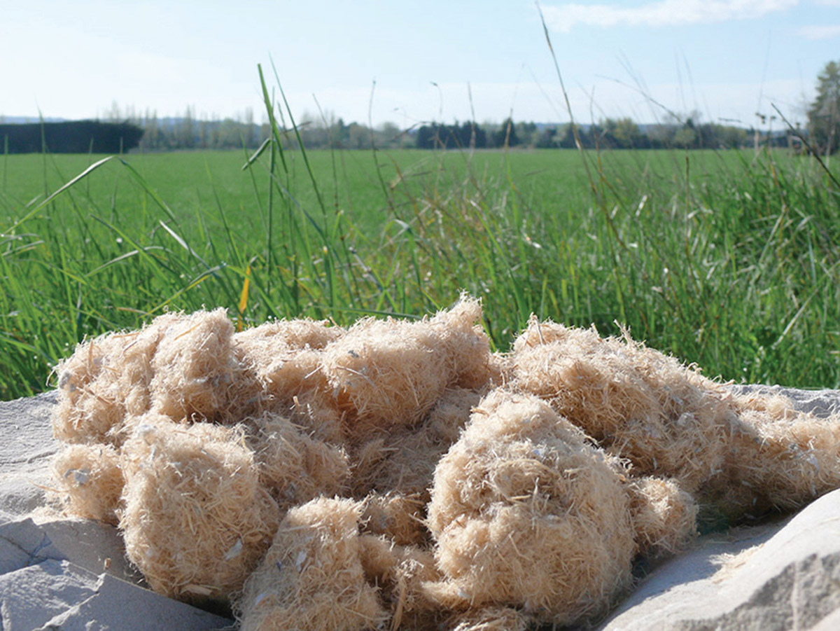 Tokį šiltinimo būdą siūlo bendrovė „Hesora“, pristatanti ekologišką įpučiamą šilumos izoliacinę medžiagą iš medienos plaušo „STEICOzell“. Ši ekologiška medžiaga puikiai izoliuoja ir akumuliuoja šilumą, apsaugo patalpas nuo vasaros karščių ir žiemos šalčių, turi geras triukšmo izoliacines savybes. Taip pat išlaiko tinkamas statines ypatybes, nesusmenga laikui bėgant, palaiko sveiką patalpų klimatą.