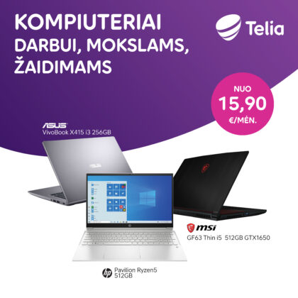 Mokslams. „Asus VivoBook X415 i3“ – plonas ir lengvas (sveria vos 1,6 kg), bet yra pakankamai galingas atlaikyti ir nuotolines pamokas, ir kino seansus, be to, jį patogu naudoti kasdien. Vertinamas už itin patogią lengvai rinkti tekstams klaviatūrą, gerą garso kokybę ir platų ekrano matymo kampą. Dabar – vos už 20,90 euro per mėnesį (mokant 24 mėn.) arba 501,60 euro mokant visą sumą iš karto.