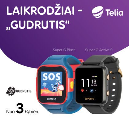 Nepamiršome ir mažųjų technologijų gerbėjų: laikrodžiai-telefonai „Gudrutis“ dabar vos nuo 3 eurų per mėnesį. Tai – puikus pirmasis išmanusis įrenginys vaikams, leidžiantis skambinti nustatytiems kontaktams, o tėvams suteikiantis daugiau ramybės, nes jie visada gali žinoti, kur yra jų vaikas.