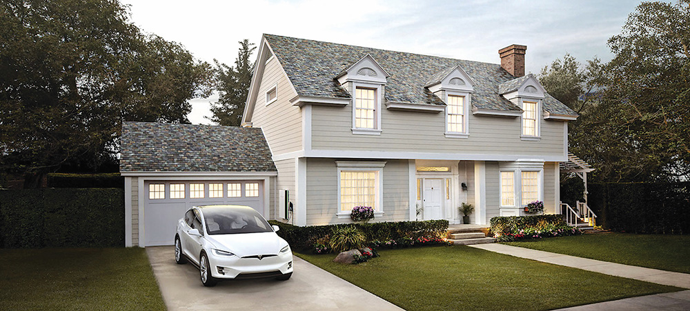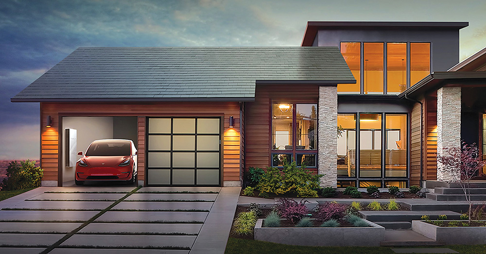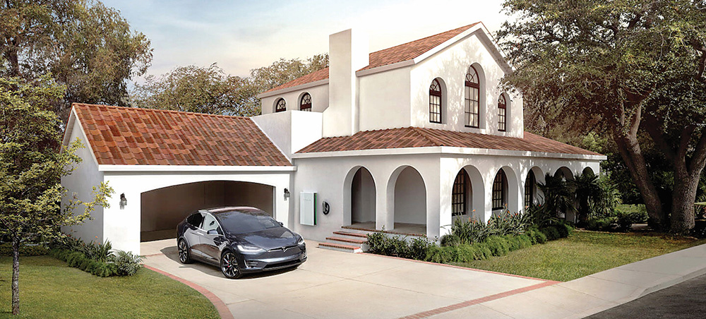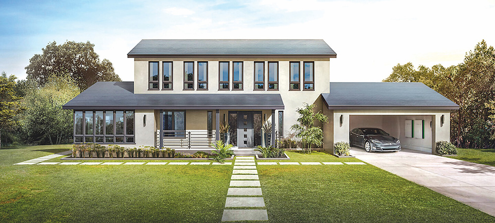 Kompanija „Tesla“ garsėja ne tik savo elektromobiliais. Saulės energija šią įmonę įkvėpė sukurti nuo įprastinių skalūno ar keraminių čerpių išvaizda beveik nesiskiriančią stogų dangą „Solar Roof“, kuri gamina elektros energiją.