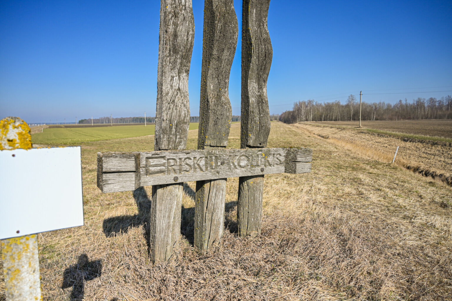 O kolūkį menanti trijų stulpų kompozicija tebestovi.