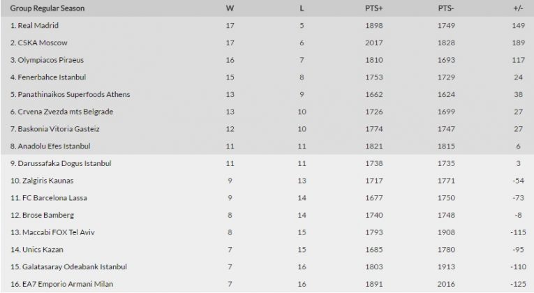 Septynioliktą pergalę iškovojusi CSKA užima antrąją vietą. Tiek pat pergalių turi ir lyderis Madrido „Real“.