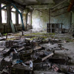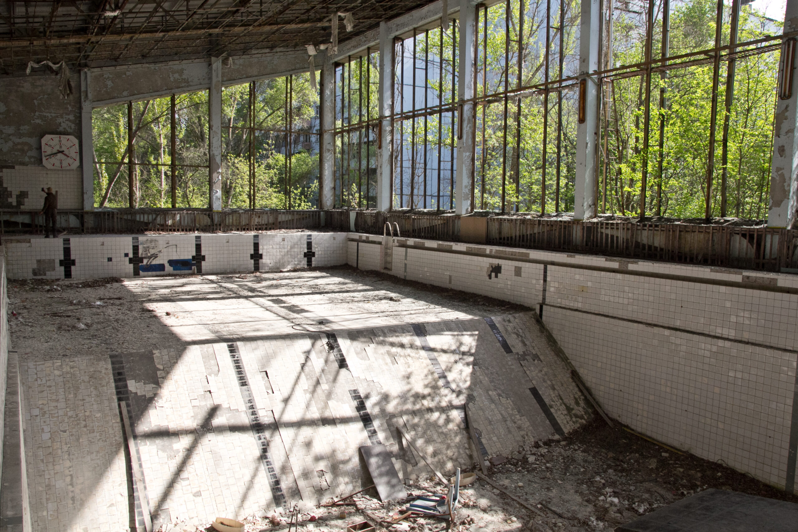 Į zonoje esančius pastatus teoriškai eiti draudžiama. O praktiškai viskas priklauso nuo lydinčio pareigūno geros valios ir būdų tą valią „pagerinti“. Užsukame į 3-iąją vidurinę mokyklą. Apsilaupiusios sienos, ant žemės ir rašomųjų stalų paskleistos knygos bei sąsiuviniai. Atsiverčiu vieną jų: rusų kalbos namų darbai atlikti balandžio 25-ąją, likus dienai iki katastrofos. Matematikos kabinetas, chemijos kabinetas, koridoriuje sustatyti portretai. Dar vienos patalpos – galbūt valgyklos – grindys padengtos storu vaikiškų dujokaukių sluoksniu. Šalia mokyklos – baseinas. Šis po katastrofos veikė dar dešimtmetį, nes juo naudojosi atominės elektrinės darbuotojai. Dabar pro didžiulius bestiklius langus tuščią dugną ir apdulkėjusias plyteles nutvieskia saulė.