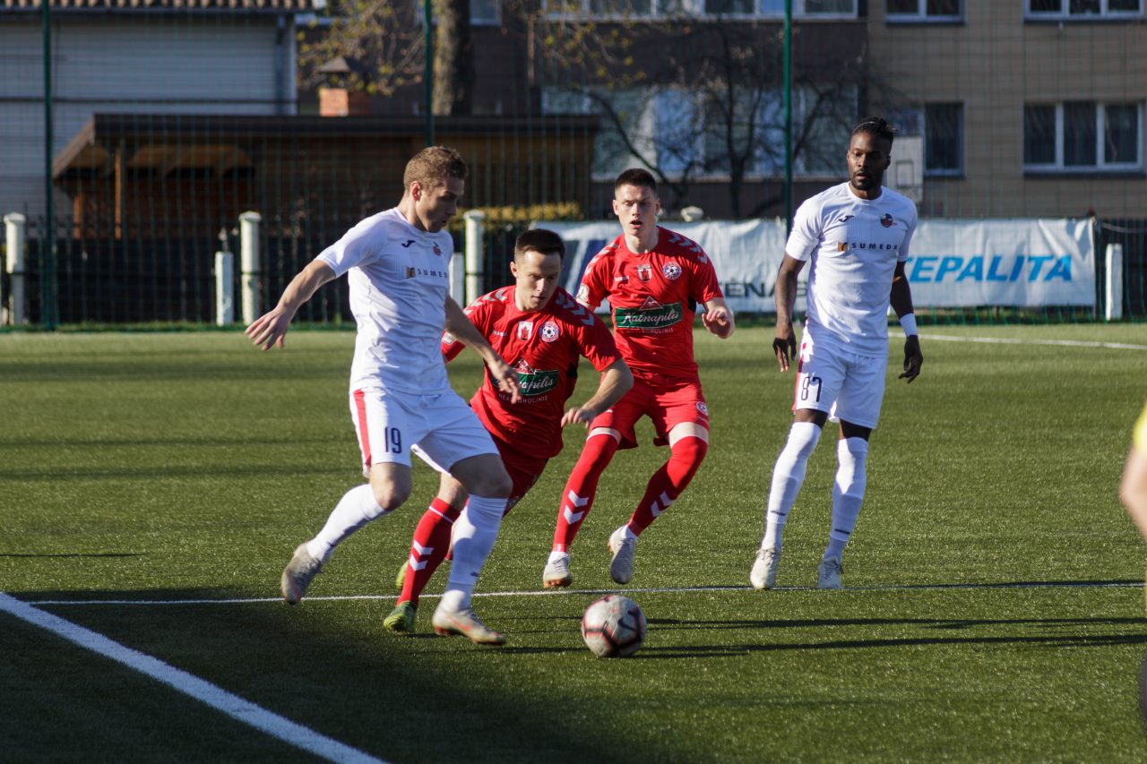 40-ąją mačo minutę rezultatas tapo lygus. Po kampinio galva kamuolį į svečių komandos vartus nukreipė gynėjas Vytas Gašpuitis.