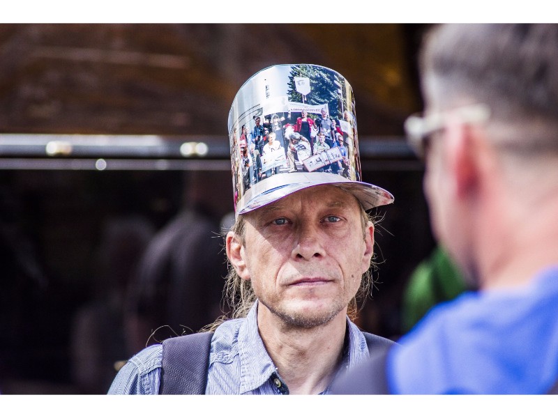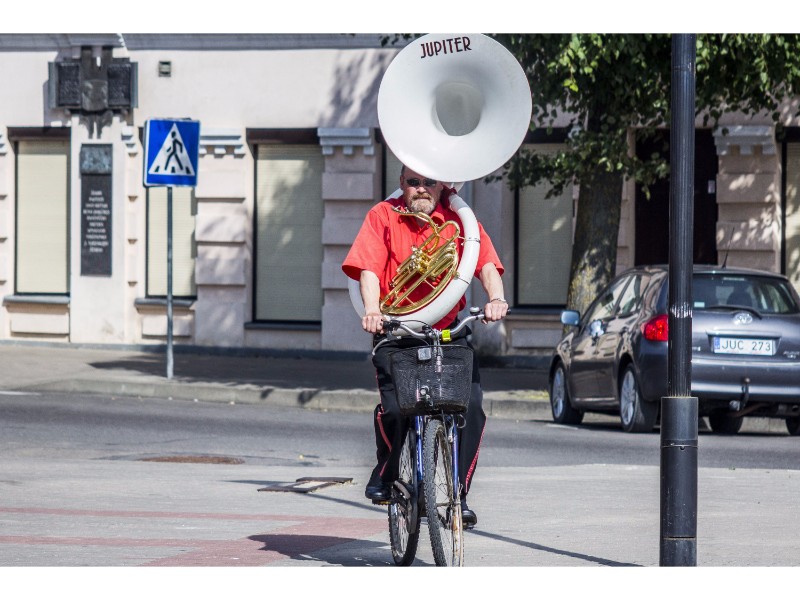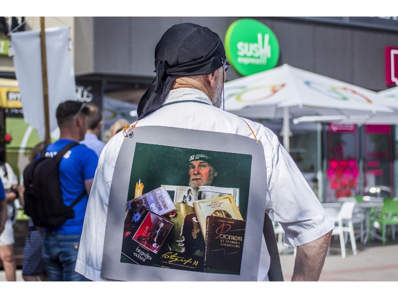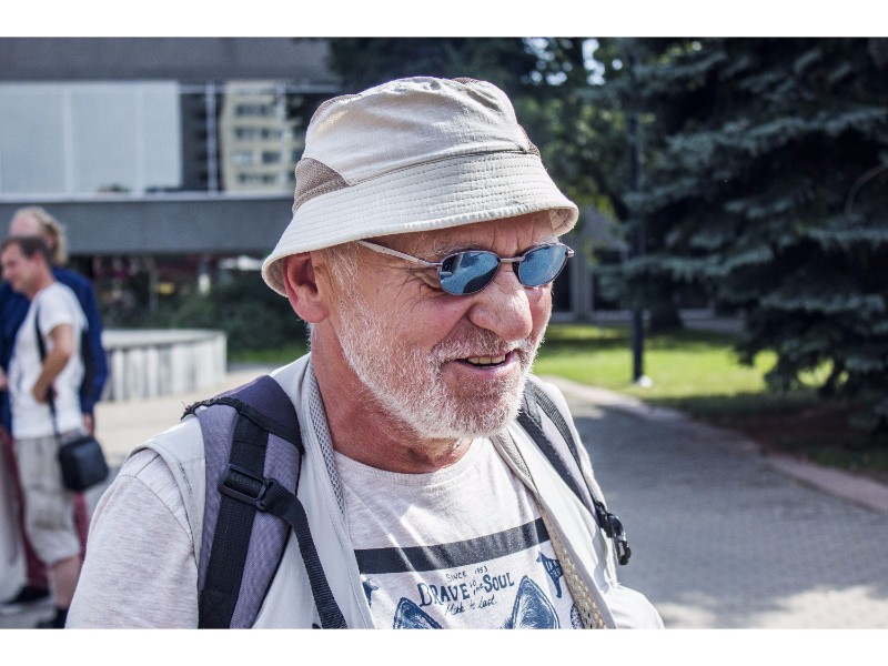Pasaulinė fotografijos diena į gimtąjį Panevėžį privertė sugrįžti ir dabar Pasvalyje gyvenantį fotomenininką Vidmantą Bručą. Eisenoje iš tolo švietė jo kuprinę papuošęs stilizuotas stop ženklas.
