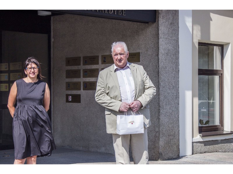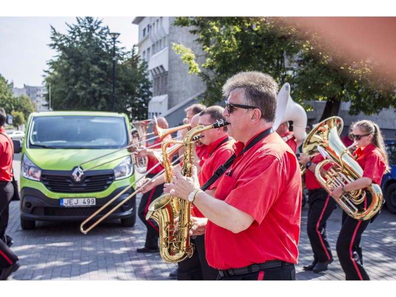 Fotografai sveikino ne tik vieni kitus, sveikinimo žodžių ir saldainių jie sulaukė ir iš miesto valdžios. O šventinę eiseną vainikavo bendra fotosesija prie Juozo Miltinio paminklo Laisvės aikštėje.