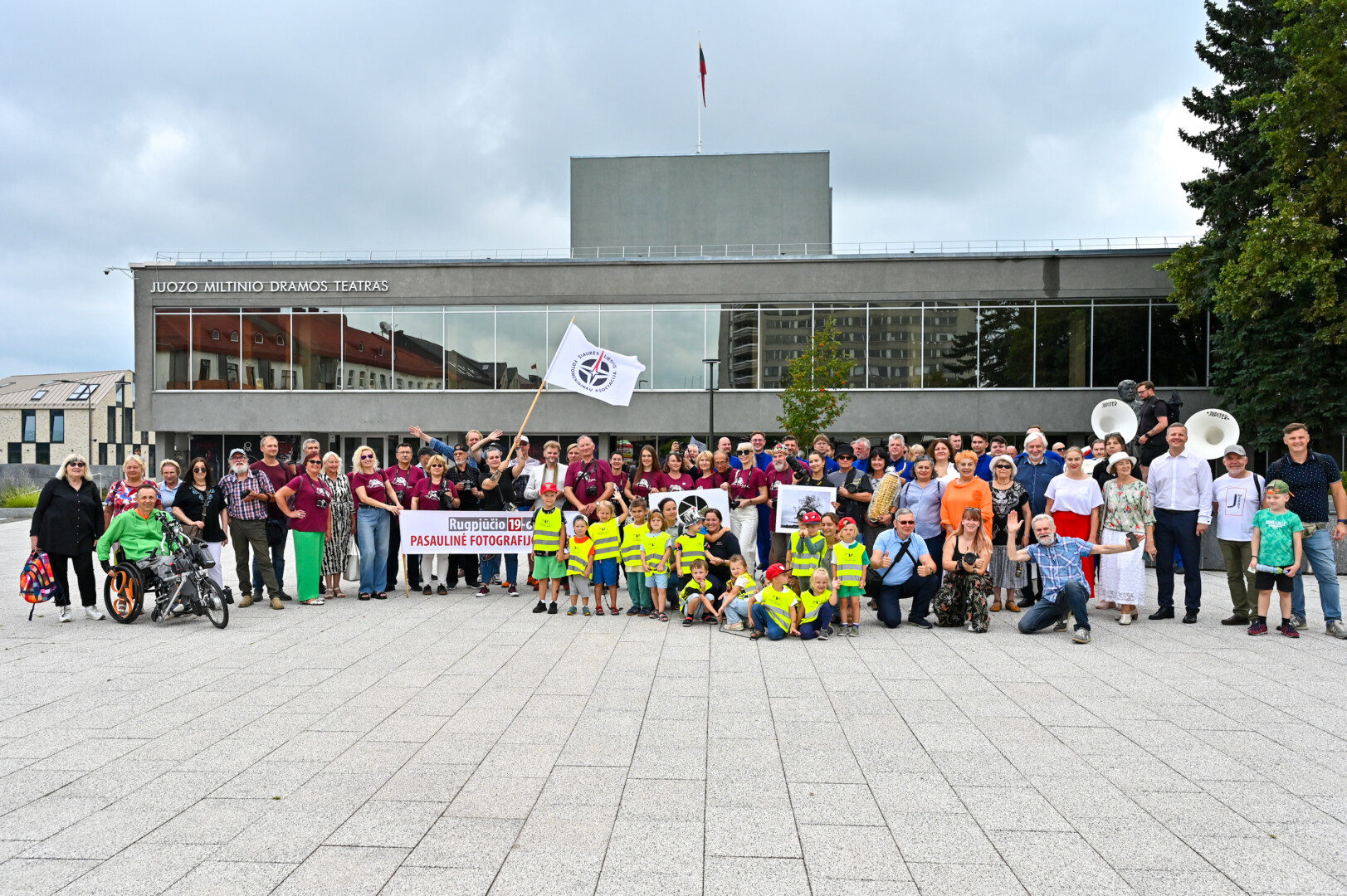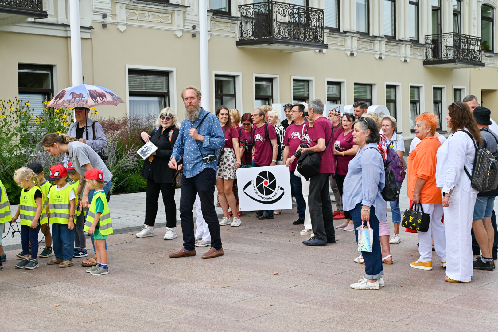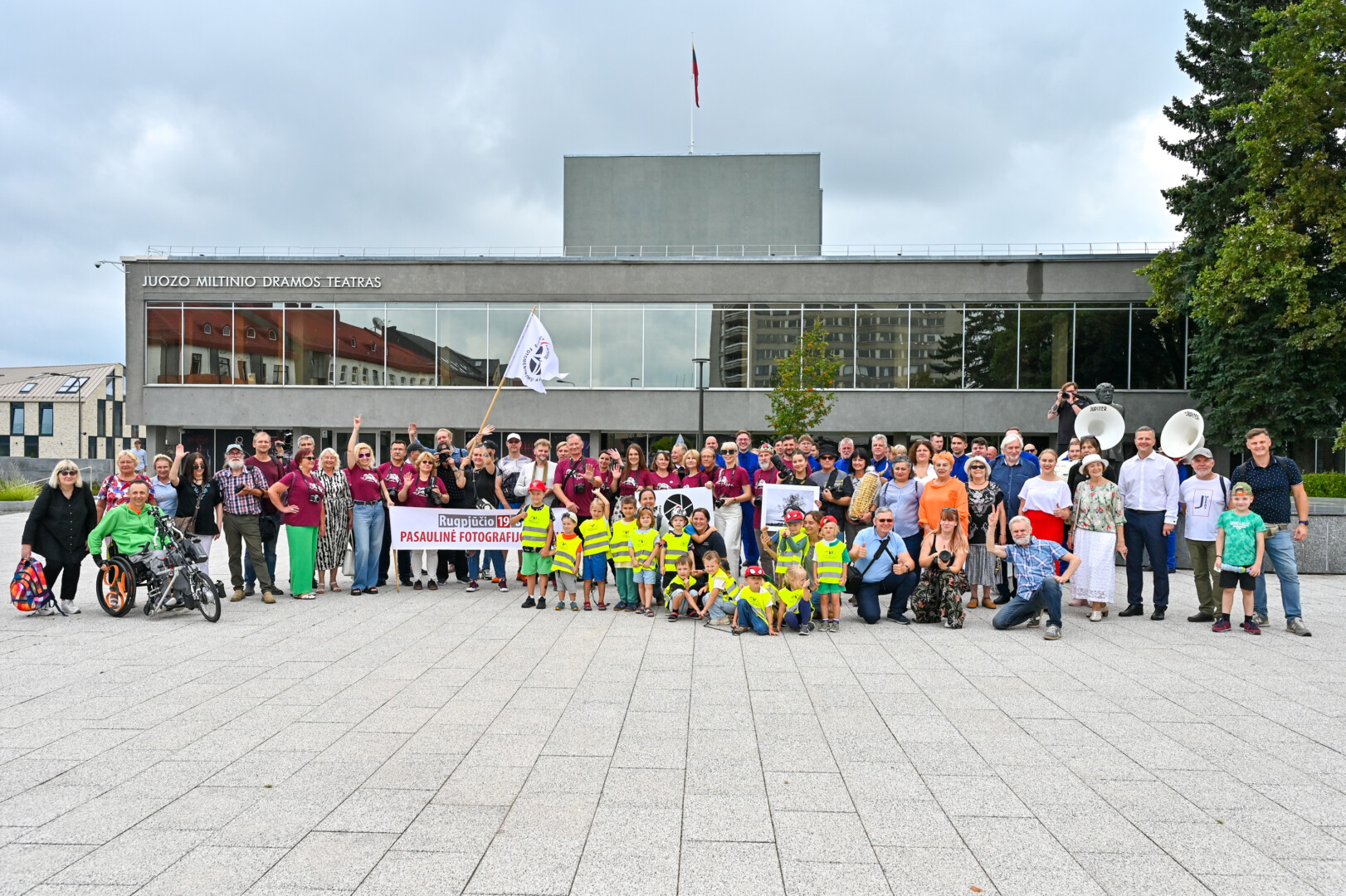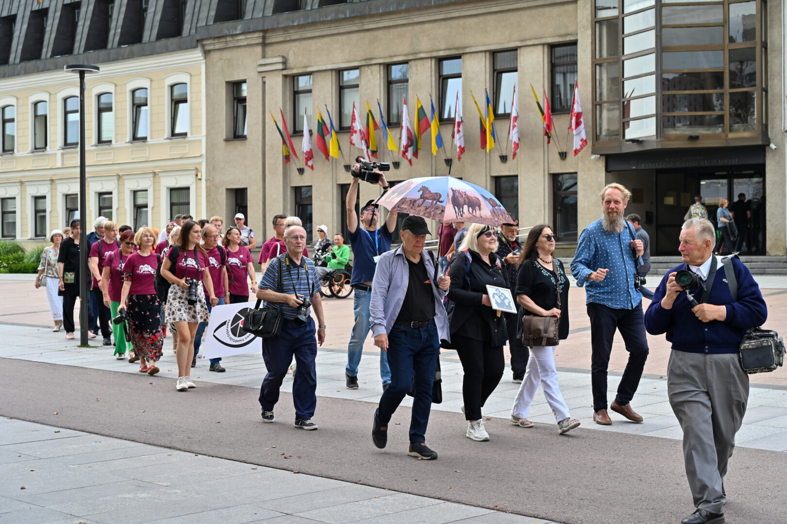 Apsukę ratą aplink Laisvės aikštę fotografai eiseną baigė prie Juozo Miltinio paminklo ir patraukė į Violetos Bubelytės parodos „Monospektaklis kitaip“ atidarymą „Galerijoje XX“.