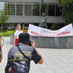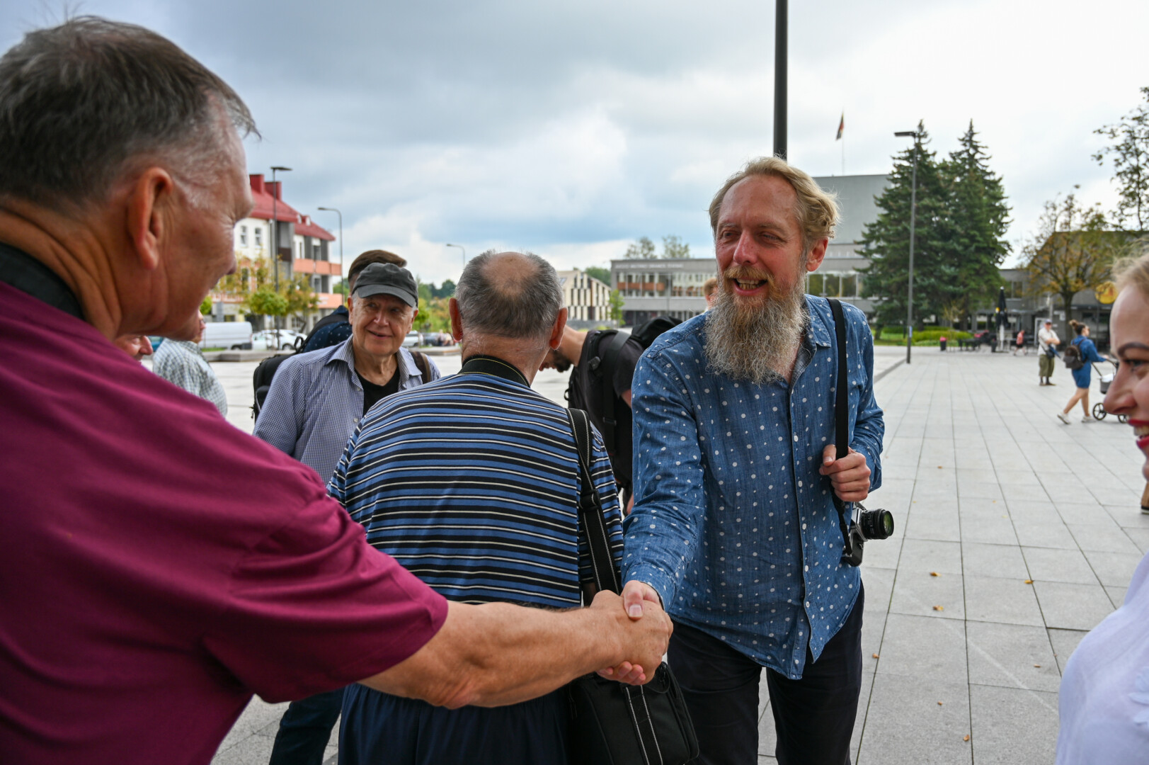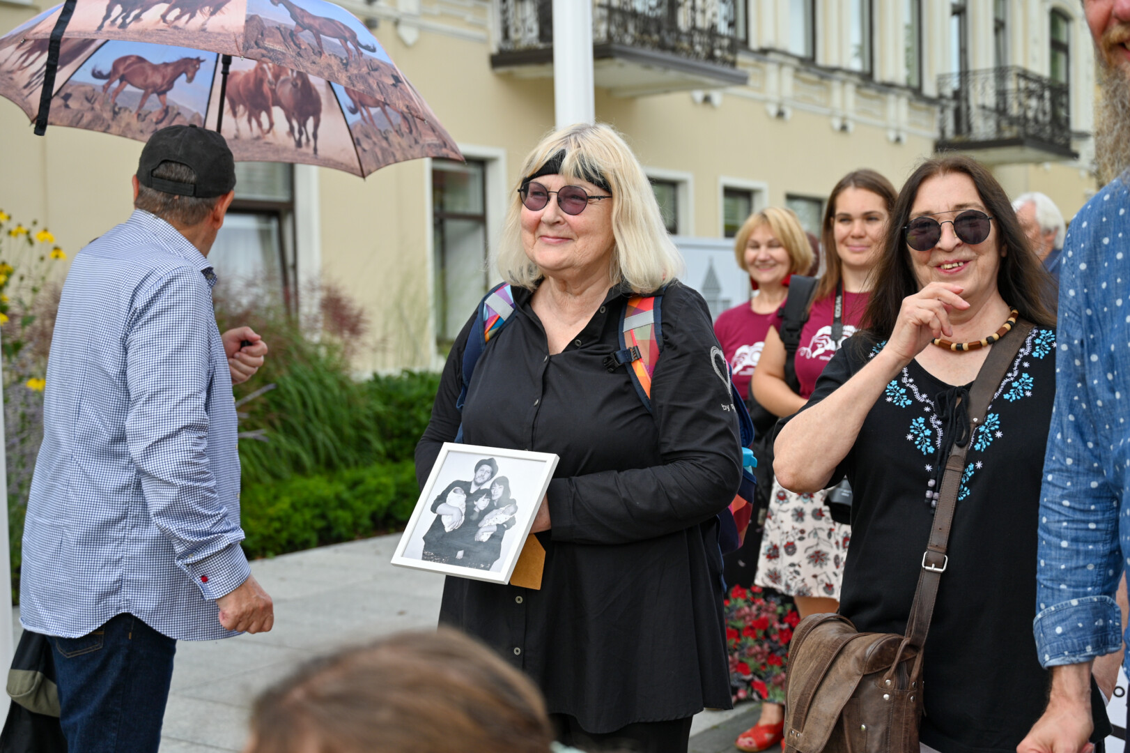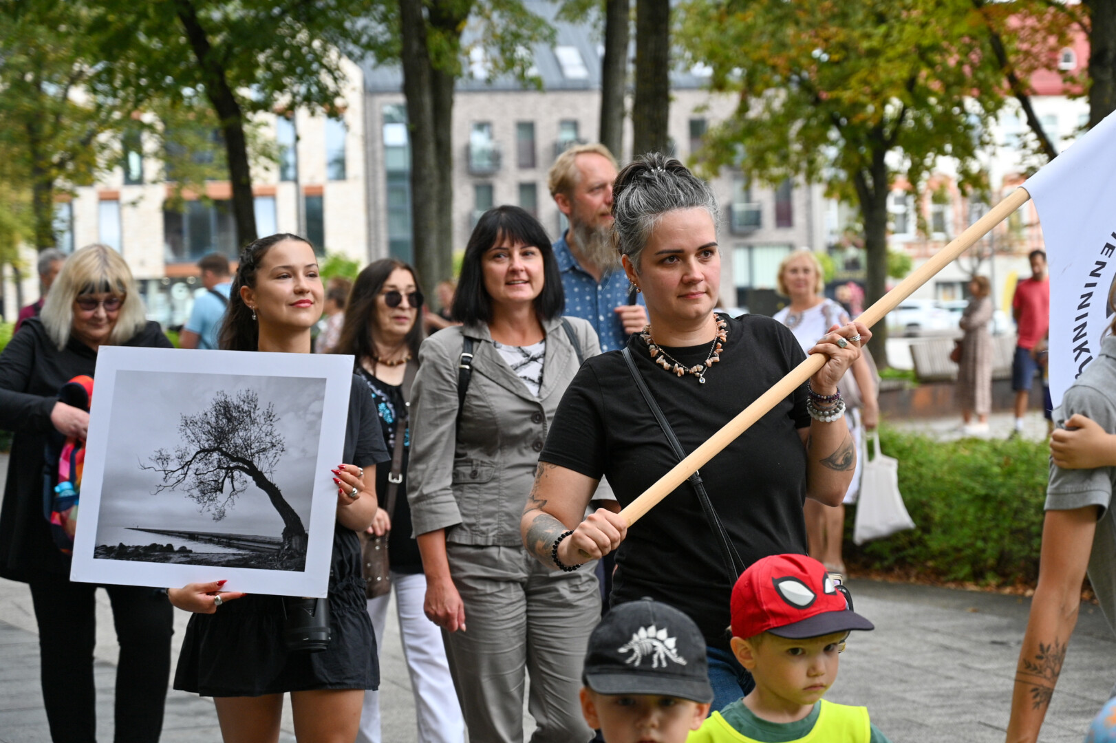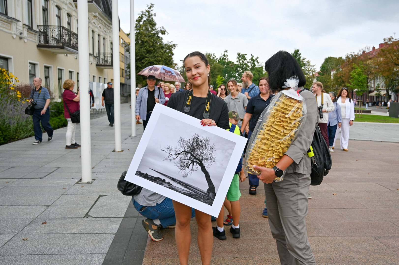 Apsukę ratą aplink Laisvės aikštę fotografai eiseną baigė prie Juozo Miltinio paminklo ir patraukė į Violetos Bubelytės parodos „Monospektaklis kitaip“ atidarymą „Galerijoje XX“.