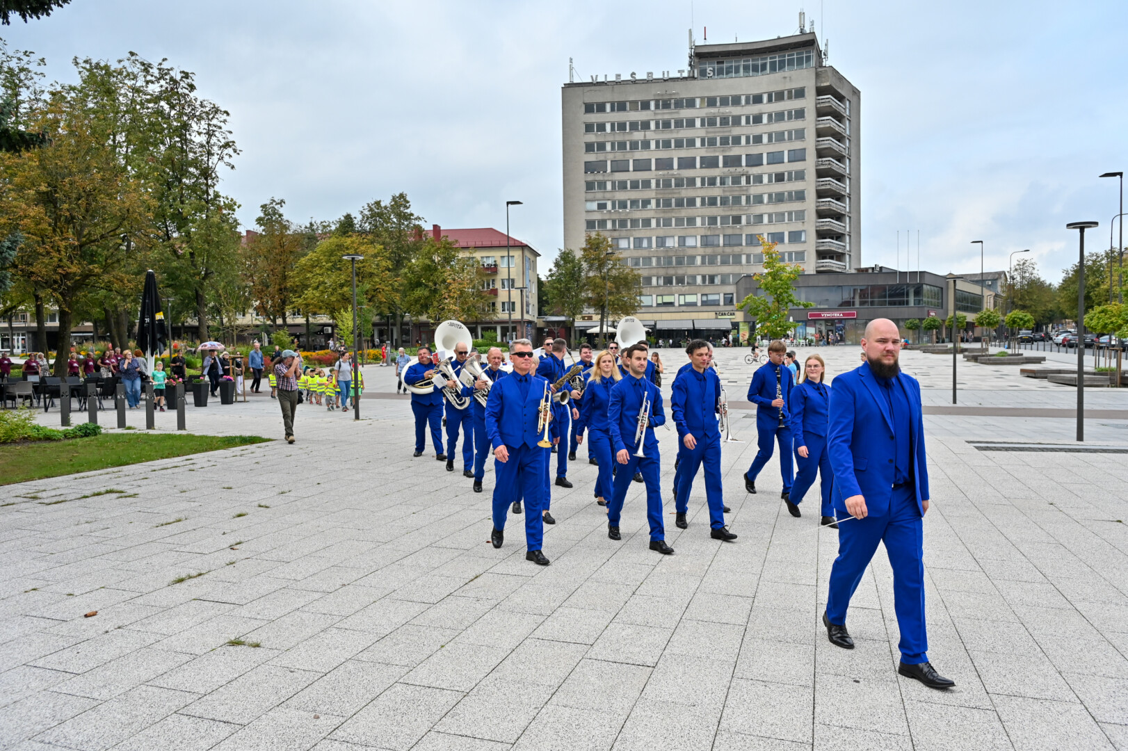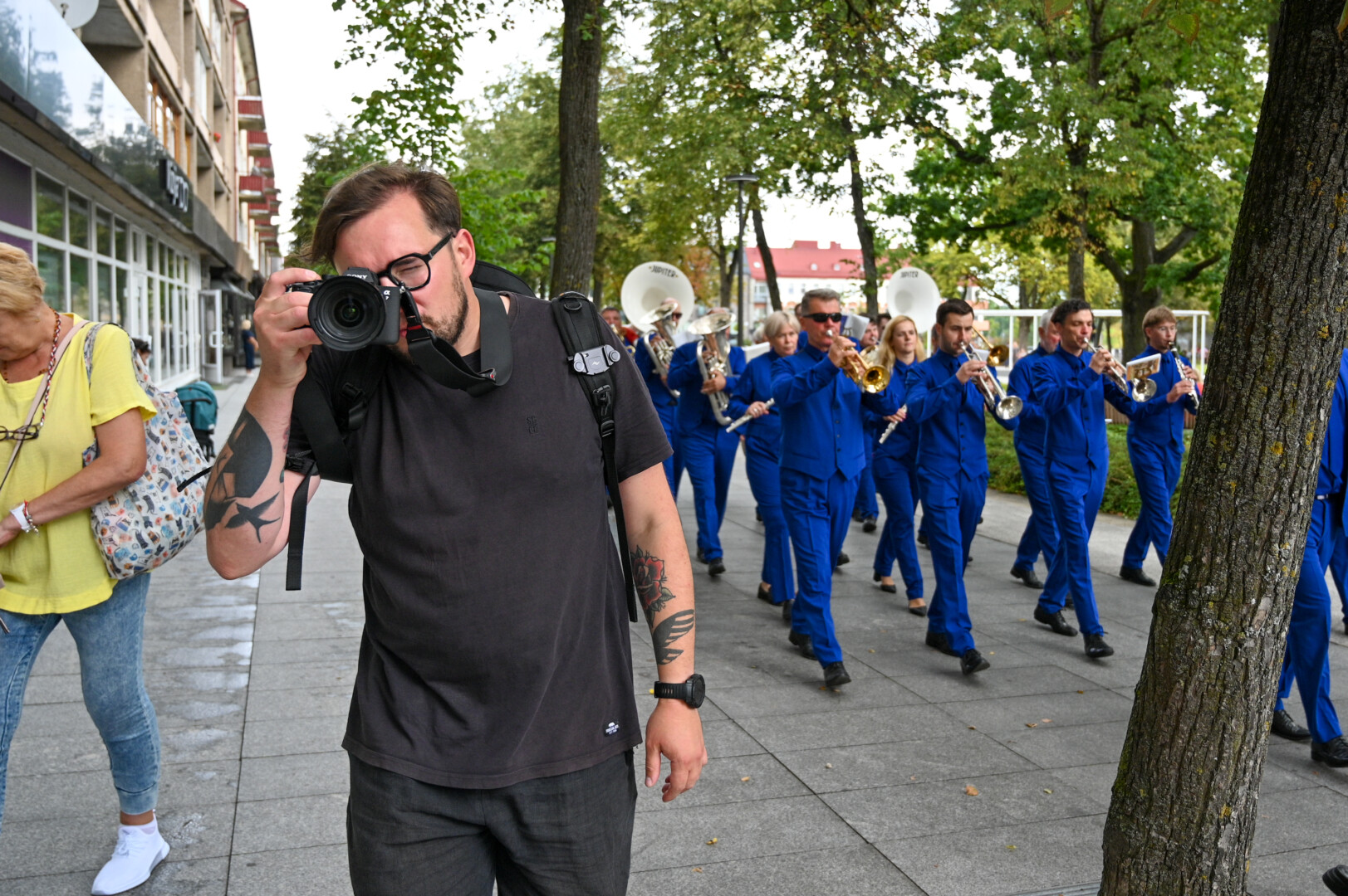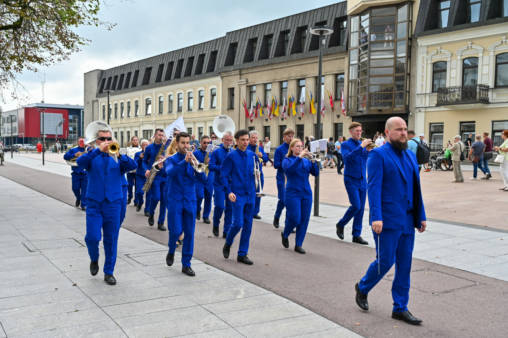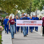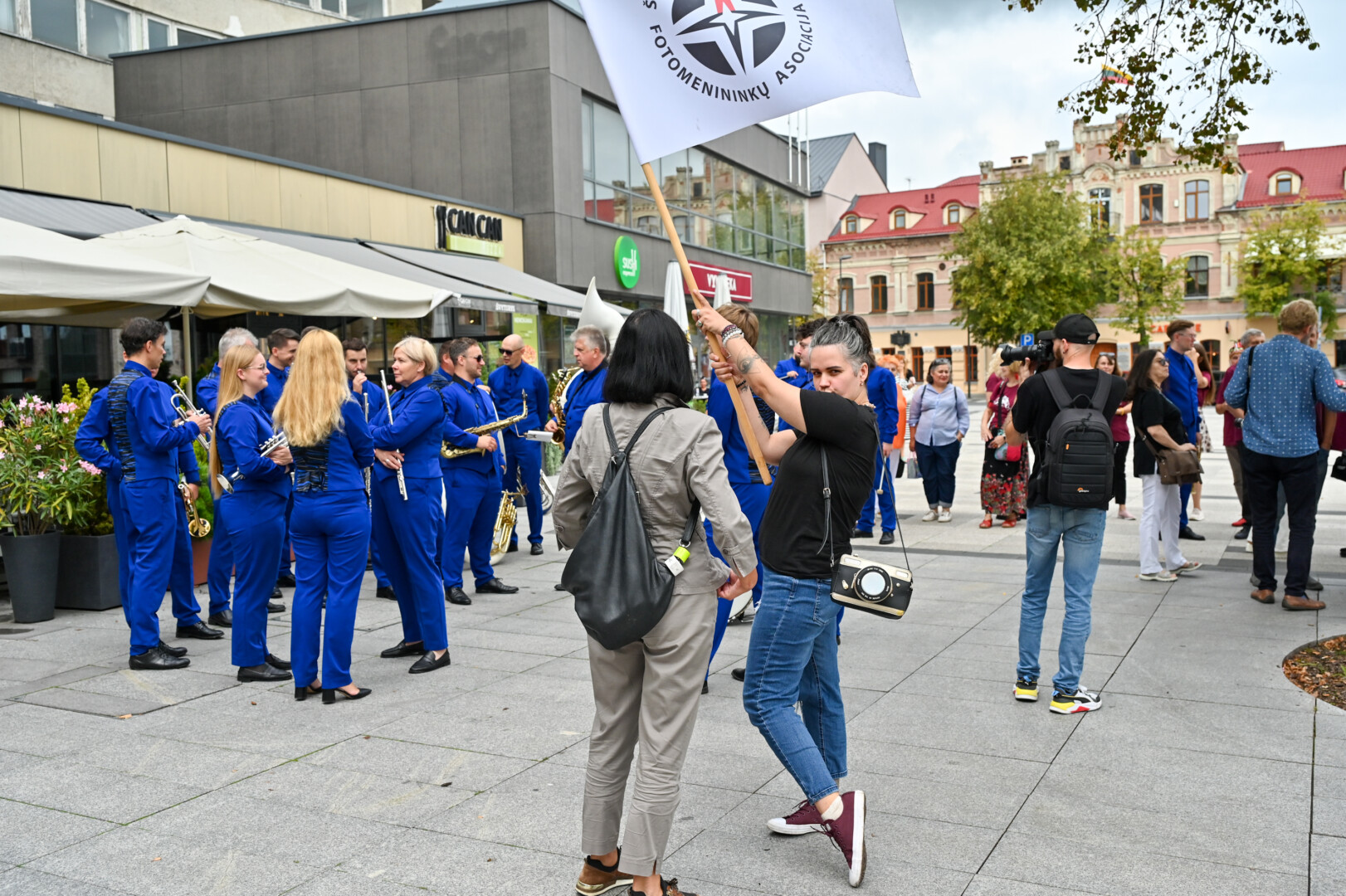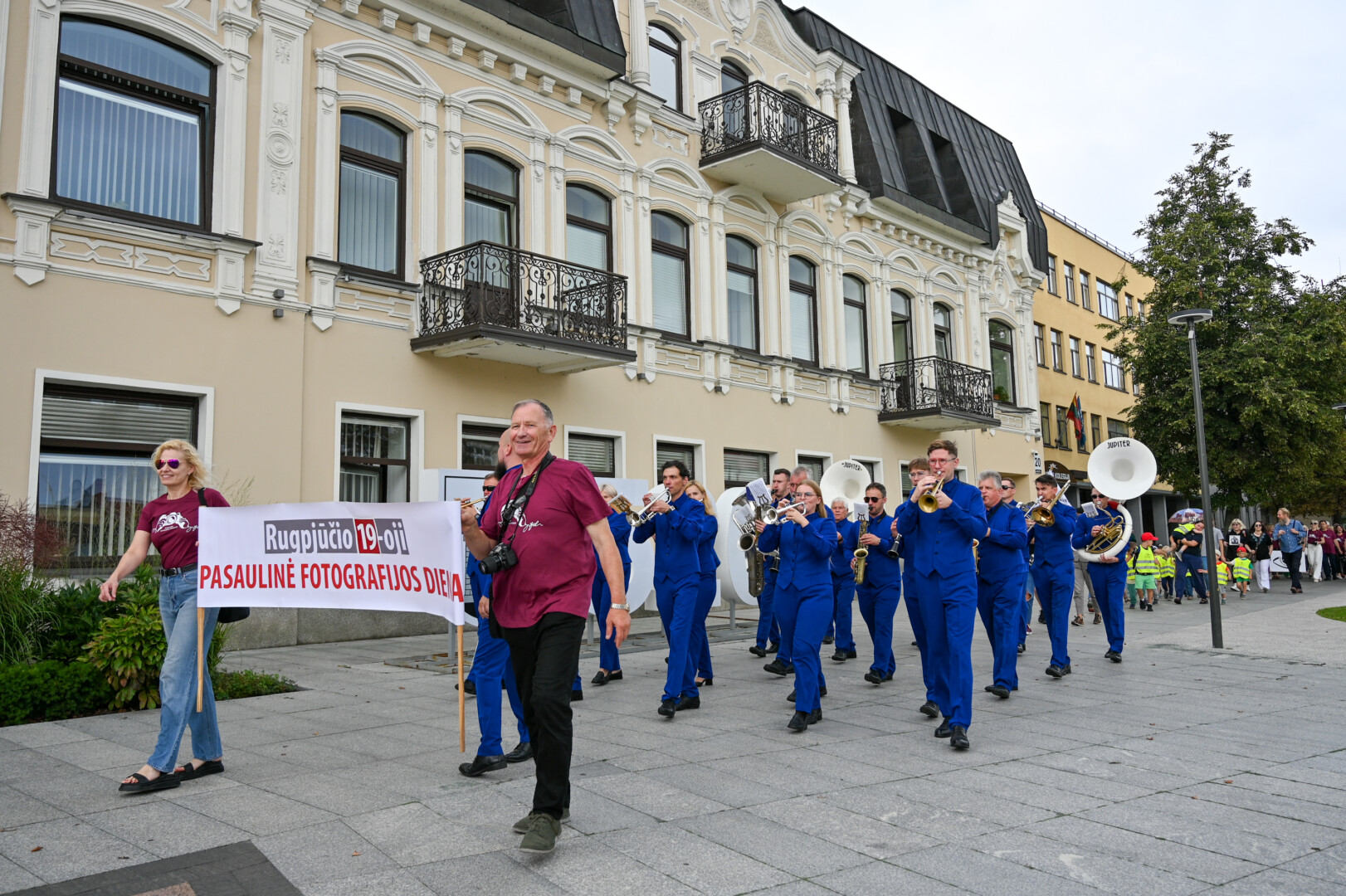Įvairiausia fototechnika ir vėliavomis nešiną eisena lydėjo Panevėžio muzikinio teatro pučiamųjų instrumentų orkestras „Garsas“.
