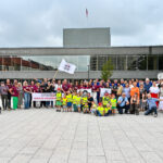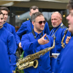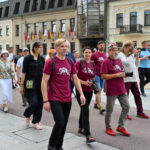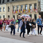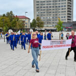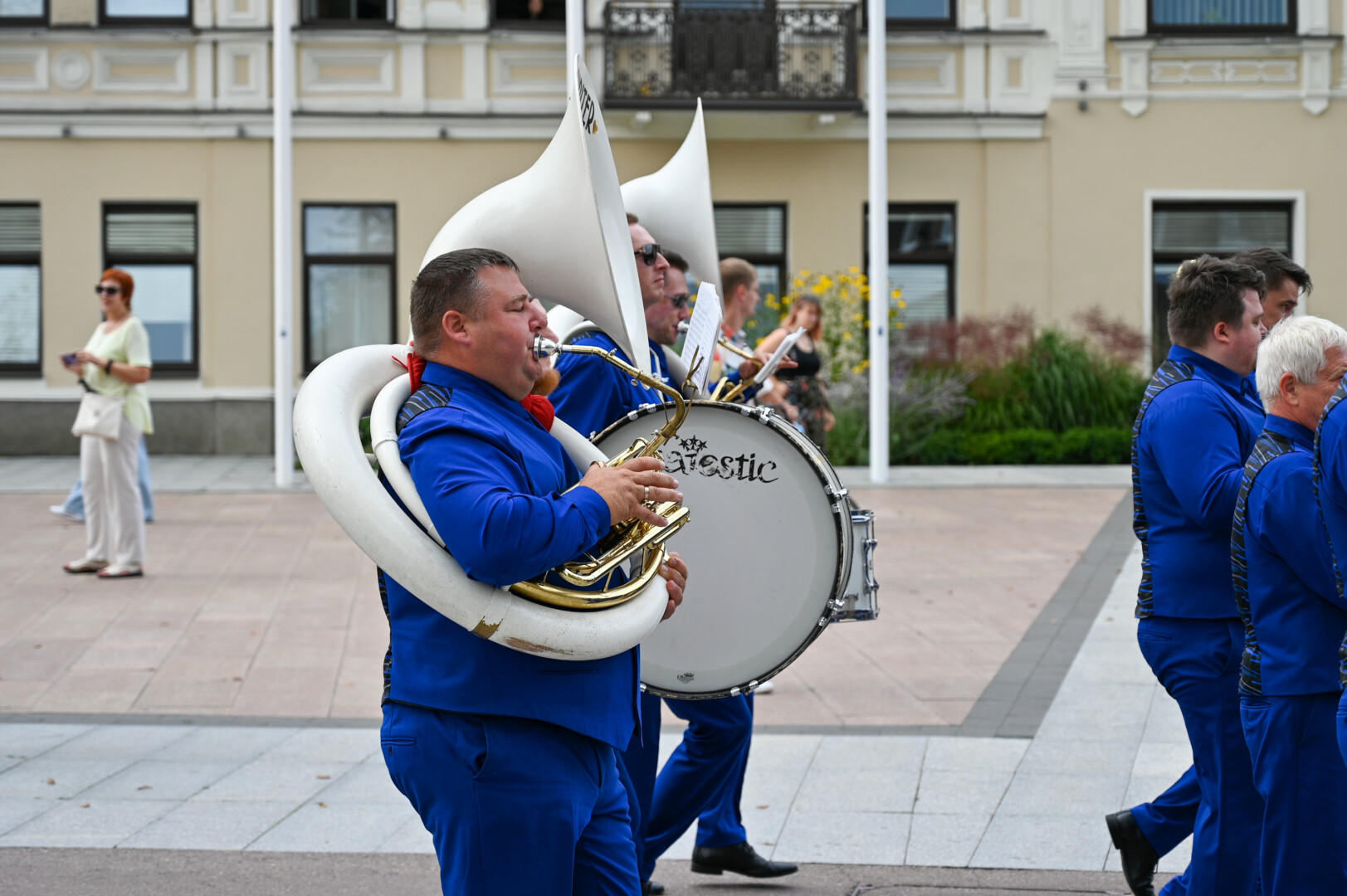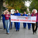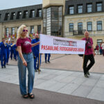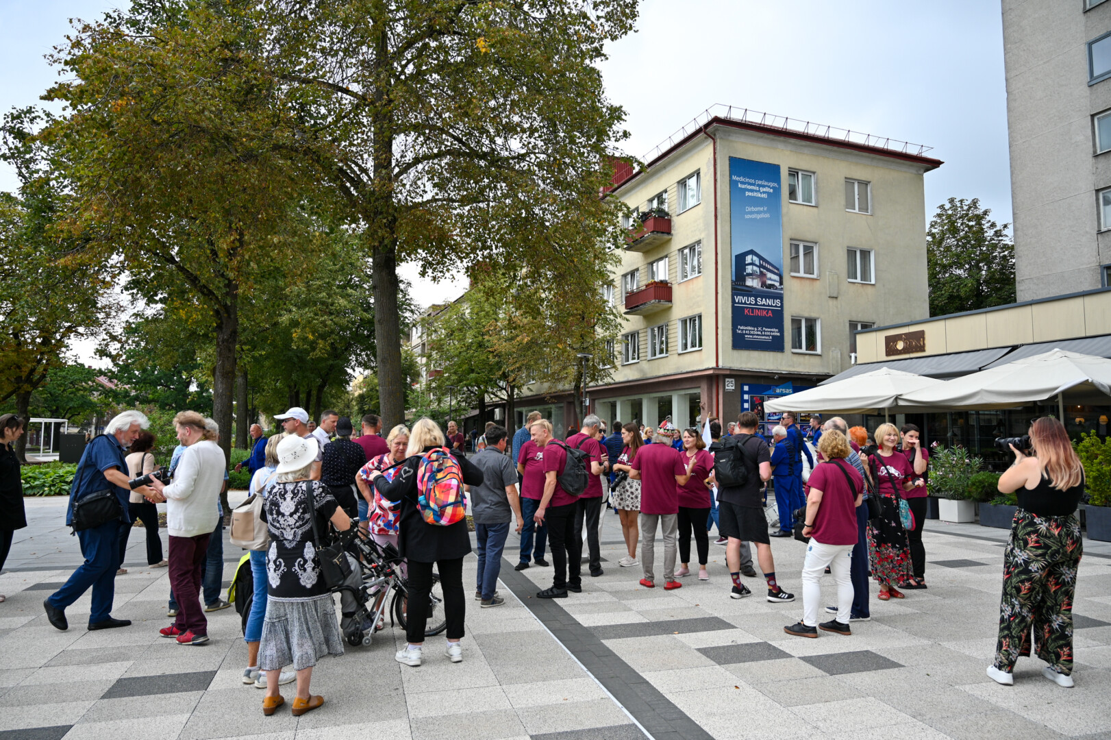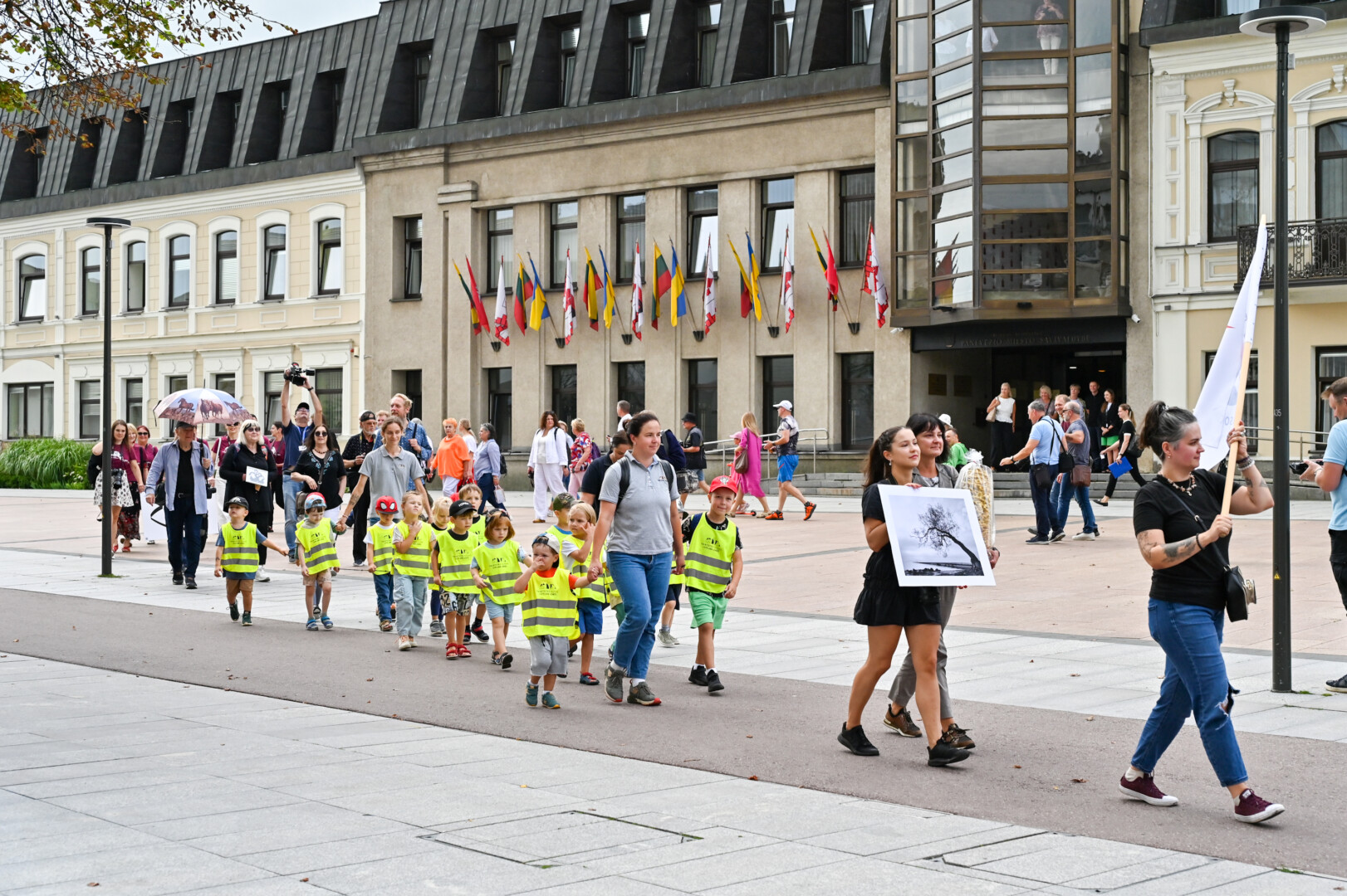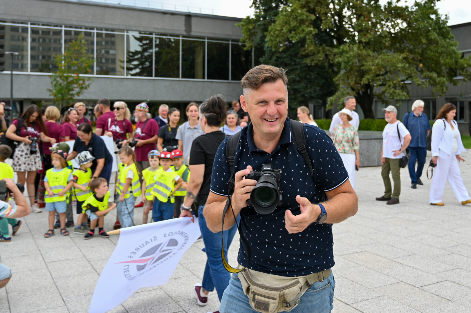 Įvairiausia fototechnika ir vėliavomis nešiną eisena lydėjo Panevėžio muzikinio teatro pučiamųjų instrumentų orkestras „Garsas“.