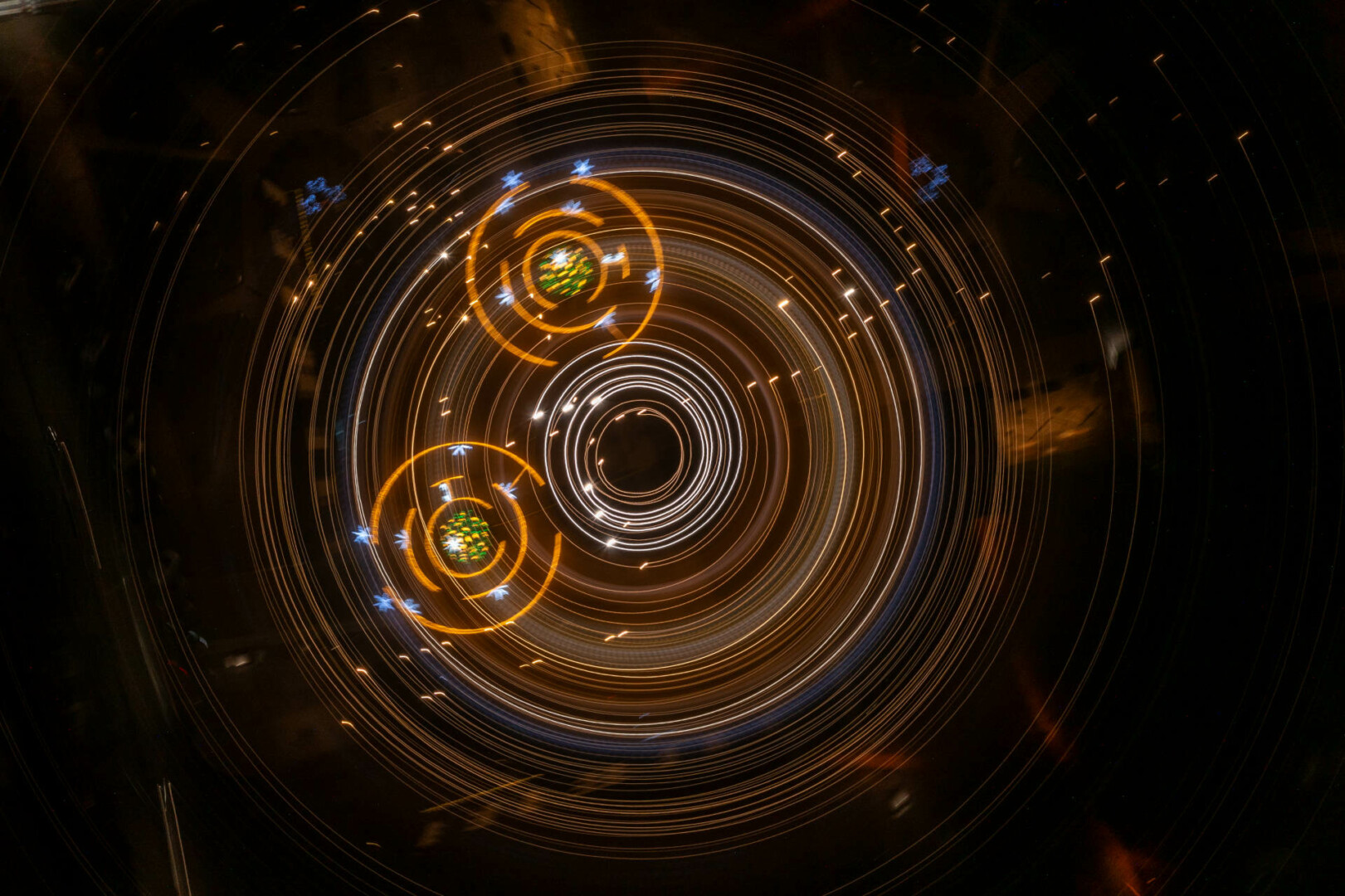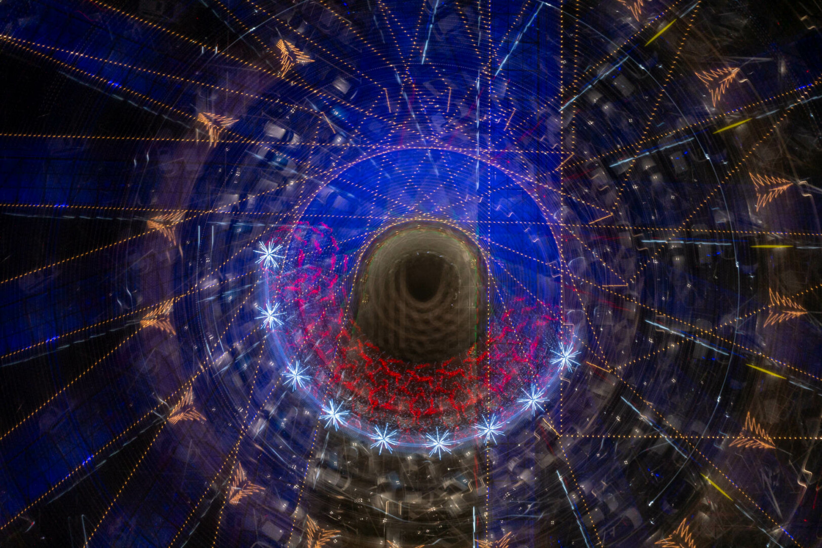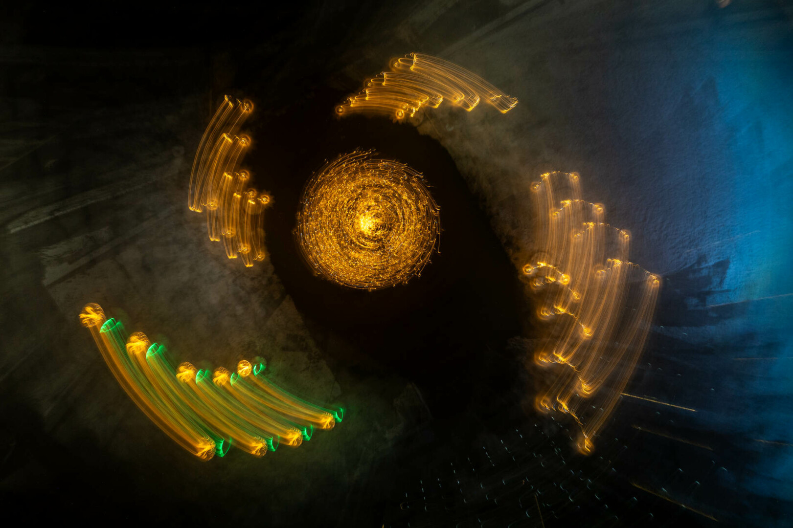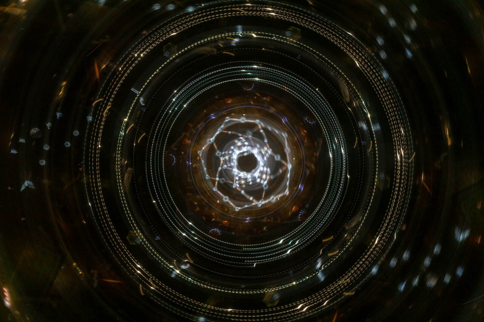 Anot fotomenininko, šis fotografijų ciklas kviečia sustoti ir pažvelgti į šventinę erdvę kitaip – ne kaip į dekoraciją, o kaip į procesą, kuriame šviesa, judesys ir laikas susilieja į naują vizualinę patirtį. „Šviesa. Mandalos“ yra ankstesnio ciklo „Šviesa“ tęsinys, kuriame žvilgsnis sąmoningai sutelkiamas į apskritimą – formą be pradžios ir pabaigos, pasikartojančią, grįžtančią, pulsuojančią.