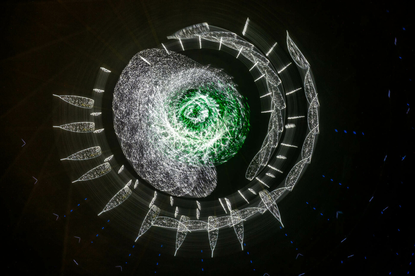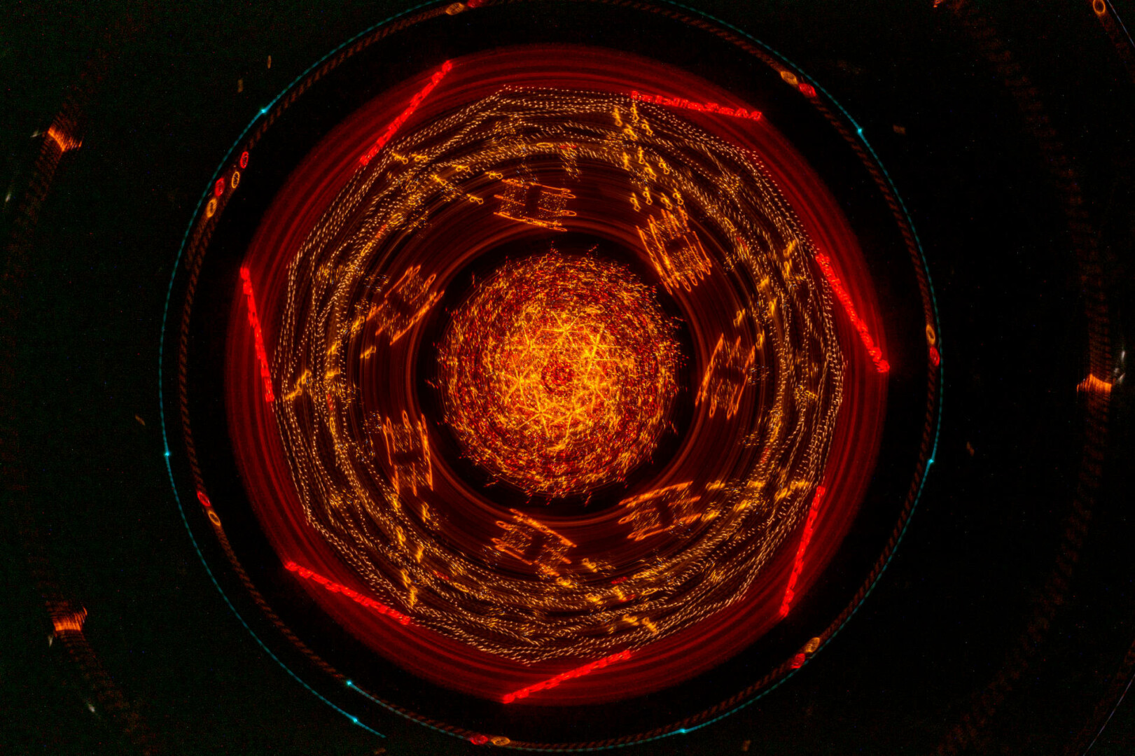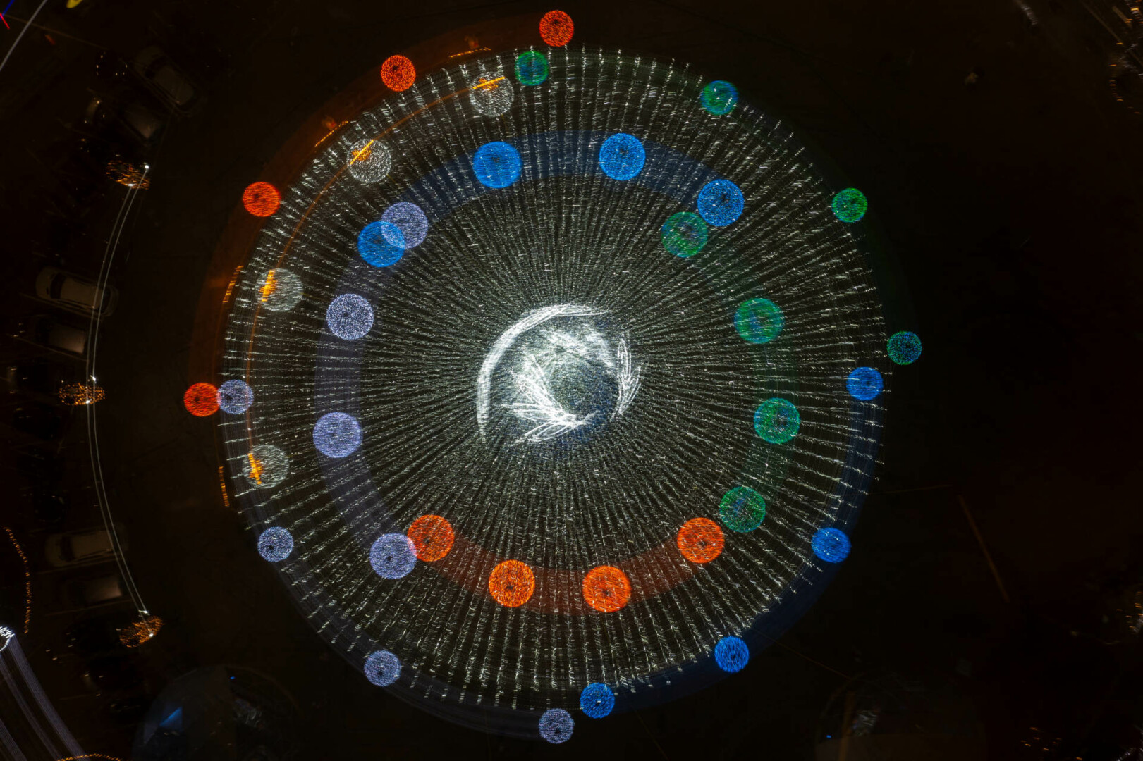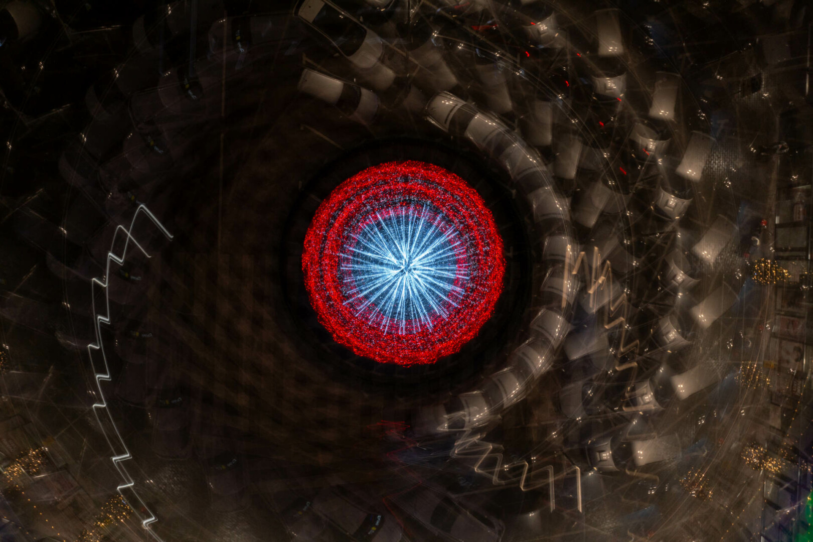 Anot fotomenininko, šis fotografijų ciklas kviečia sustoti ir pažvelgti į šventinę erdvę kitaip – ne kaip į dekoraciją, o kaip į procesą, kuriame šviesa, judesys ir laikas susilieja į naują vizualinę patirtį. „Šviesa. Mandalos“ yra ankstesnio ciklo „Šviesa“ tęsinys, kuriame žvilgsnis sąmoningai sutelkiamas į apskritimą – formą be pradžios ir pabaigos, pasikartojančią, grįžtančią, pulsuojančią.