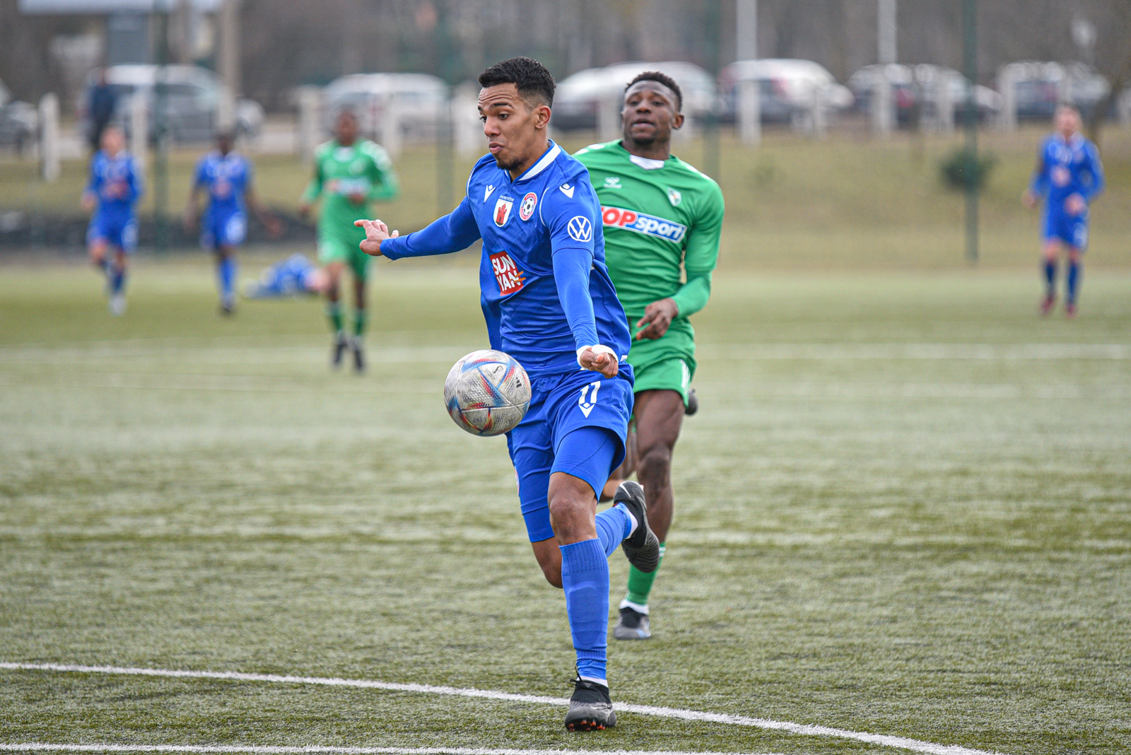 Susitikimas Panevėžyje prasidėjo be didesnės žvalgybos. Jau 6-ąją mačo minutę šeimininkai turėjo neblogą progą pasižymėti, bet Wandersono Melo iš baudos aikštelės smūgiuotas kamuolys praskriejo visiškai šalia „Kauno Žalgirio“ komandos vartų virpsto. Po kelių minučių jau kauniečiai buvo arti tikslo. Svečių ekipos futbolininkas Artūras Dolžnikovas iš dėkingos progos nepataikė į vartus.