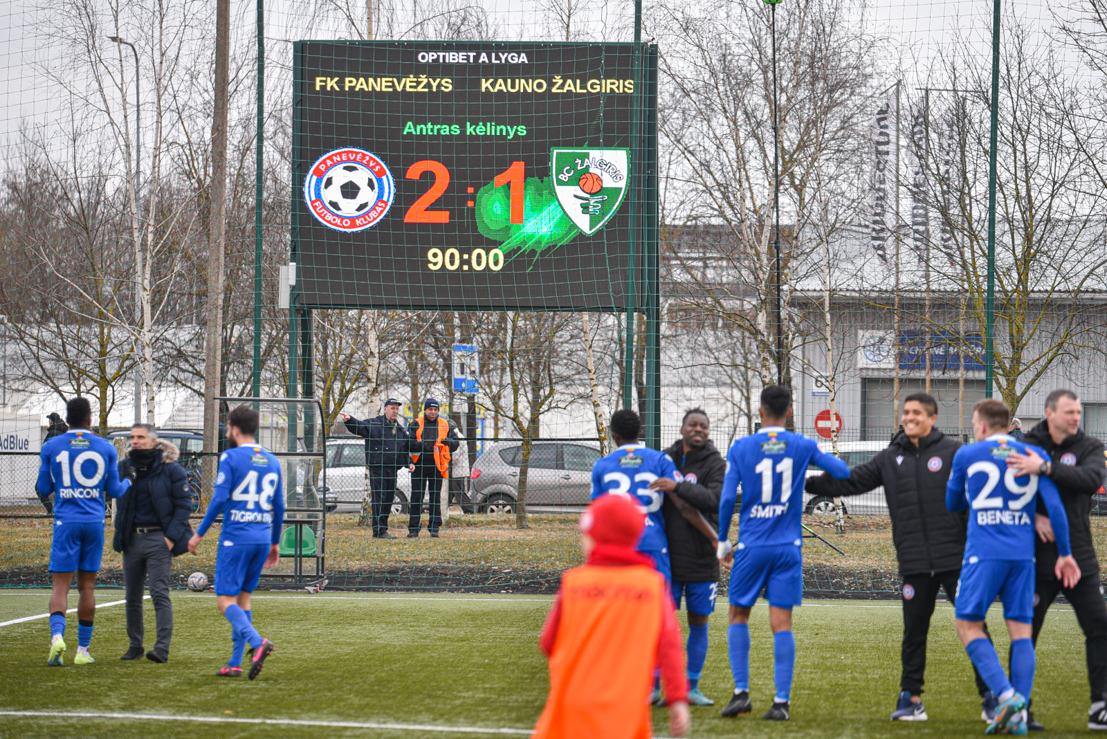 87-ąją rungtynių minutę aikštės šeimininkai surengė puikią ataką ir pelnė įvartį. Po Sebastiano Rincono tikslaus perdavimo svečių ekipos vartininką Deidivą Mikelionį nuginklavo Ariagneris Smithas. Per likusį laiką rezultatas napasikeitė – FK „Panevėžys“ iškovojo pergalę rezultatu 2:1.