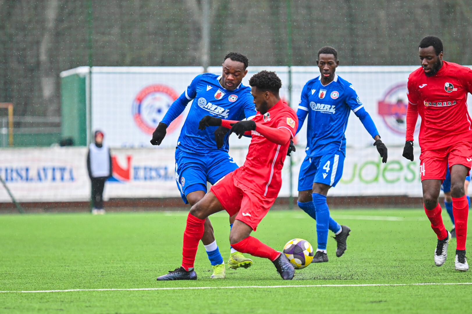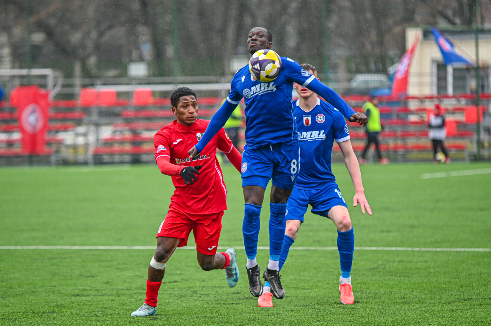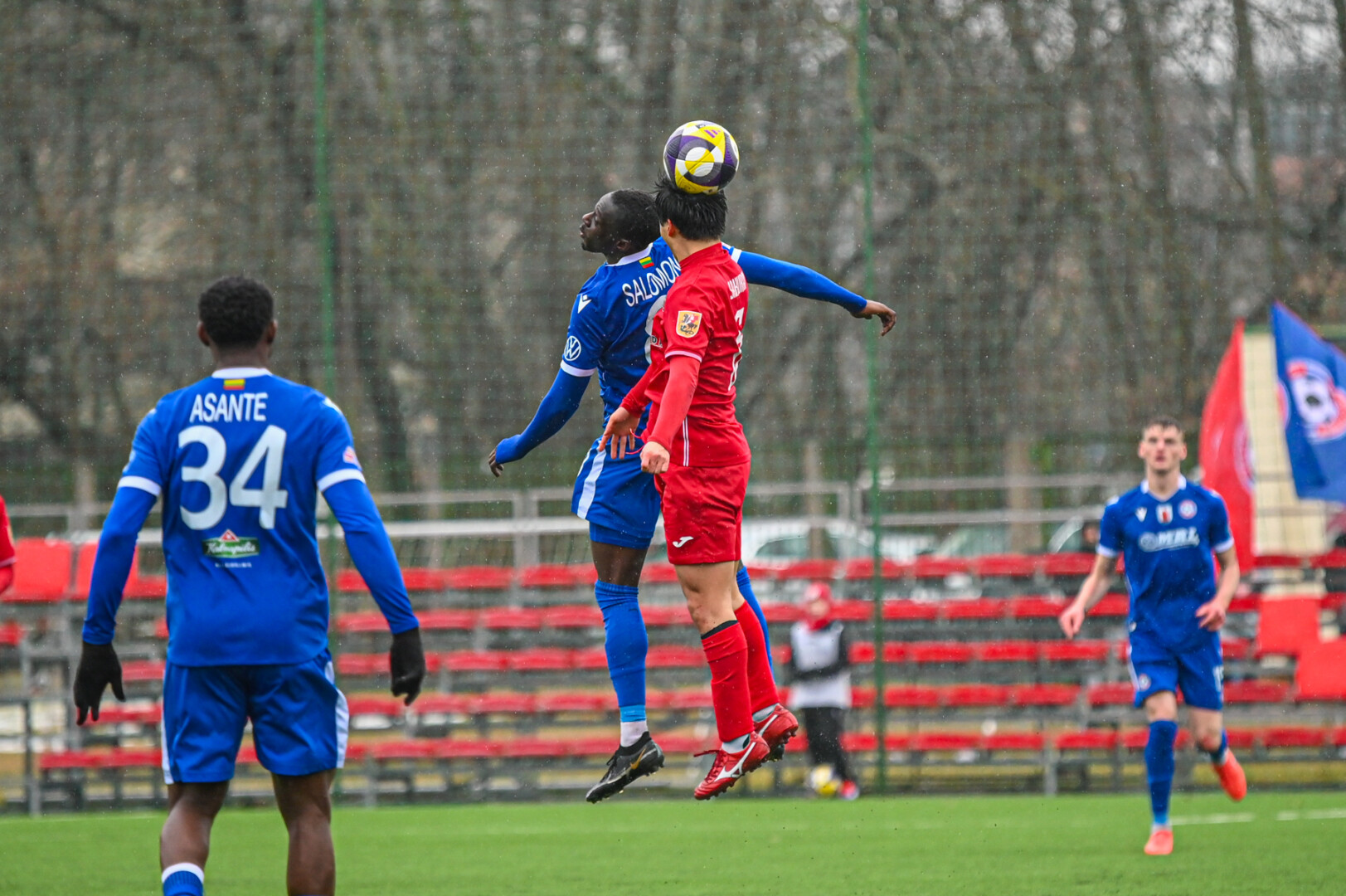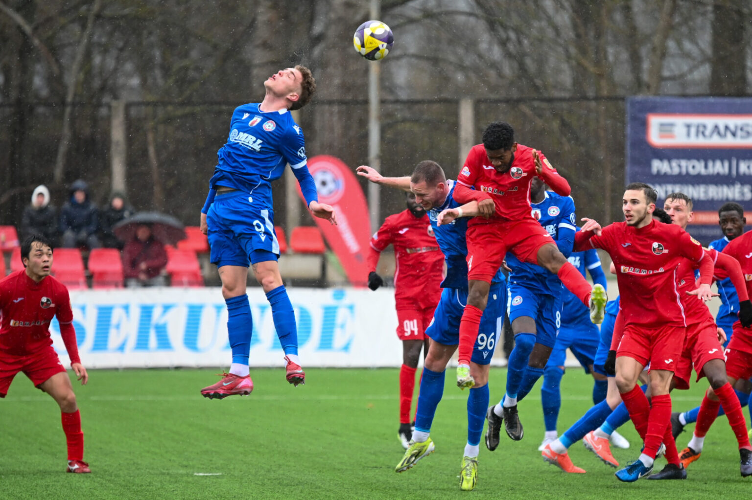 8-ąją minutę Sidy Sanokho po Justino Januševskio klaidos perėmė kamuolį, tačiau siuntė jį virš vartų. Sužaidus pusė kelinio standartinės situacijos metu Isaacas Dante baudos aikštelėje surado Faustą Steponavičių, į situaciją laiku sureagavo Ignas Plūkas. Kiek vėliau Vytauto Černiausko iškumščiuotą kamuolį šalia vartų siuntė Idrisas Momoh, Nauris Petkevičiaus geroje situacijoje vartų sargo taip pat nepergudravo.