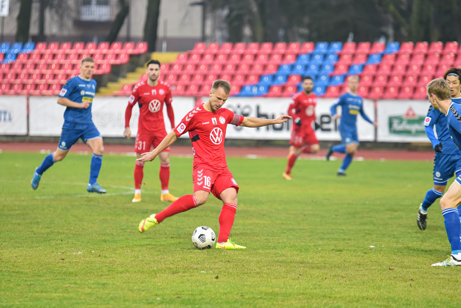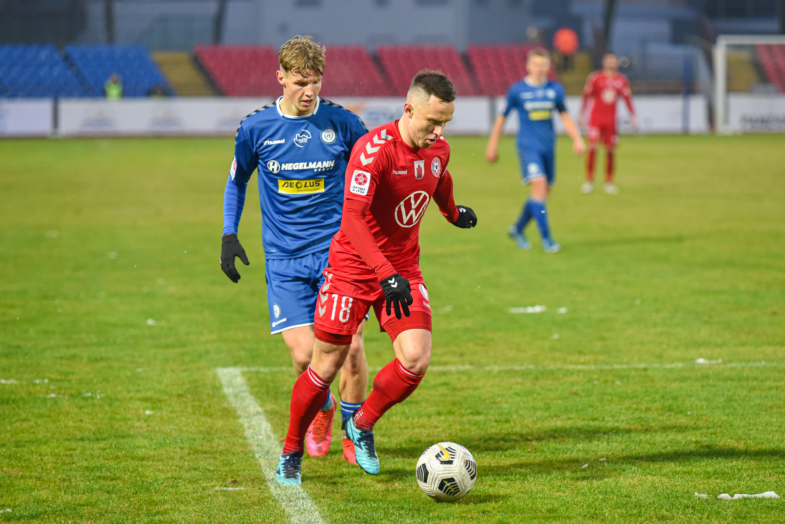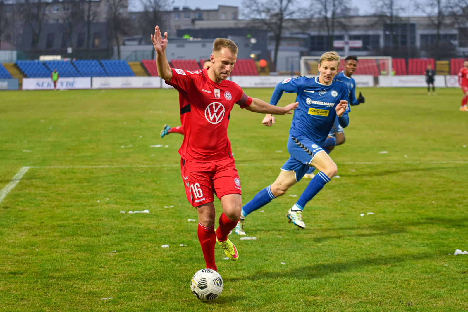 Besibaigiant pirmajai rungtynių daliai, „Hegelmann Litauen“ taip pat suaktyvino savo puolimą. Tai iliustravo ir uždirbtas 11 metrų baudinys į Panevėžio ekipos vartus. Nauris Petkevičius 43-iąją minutę išlygino rezultatą (1:1).