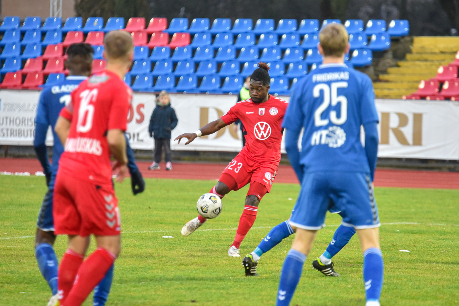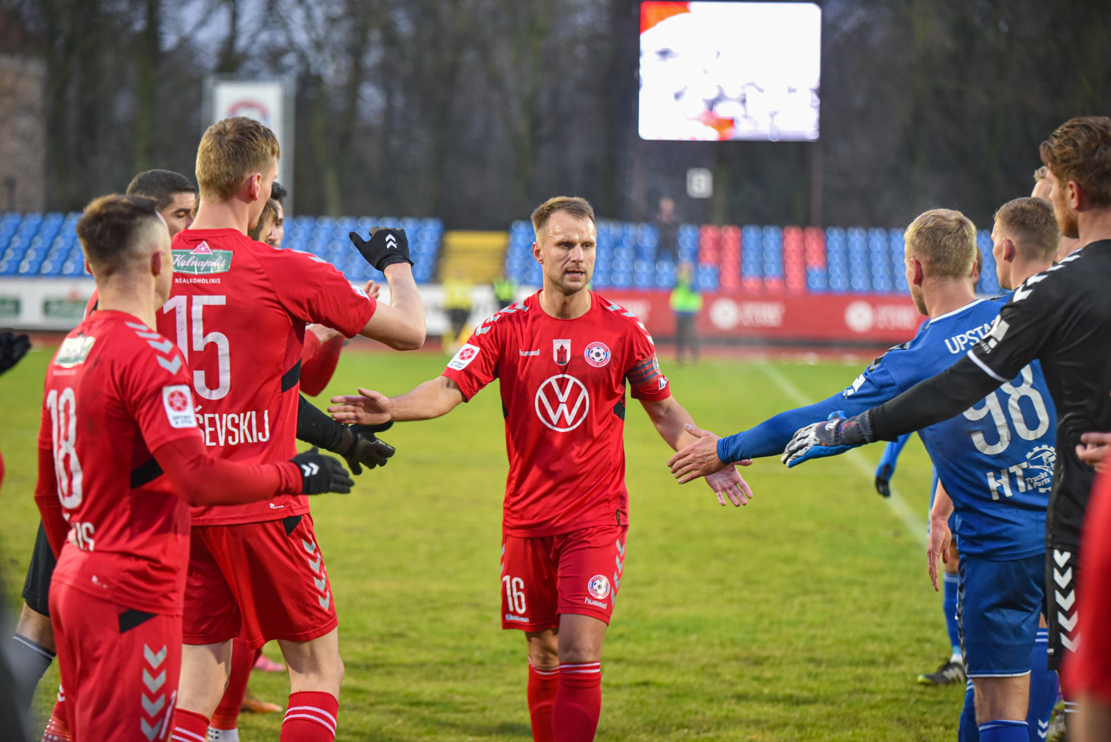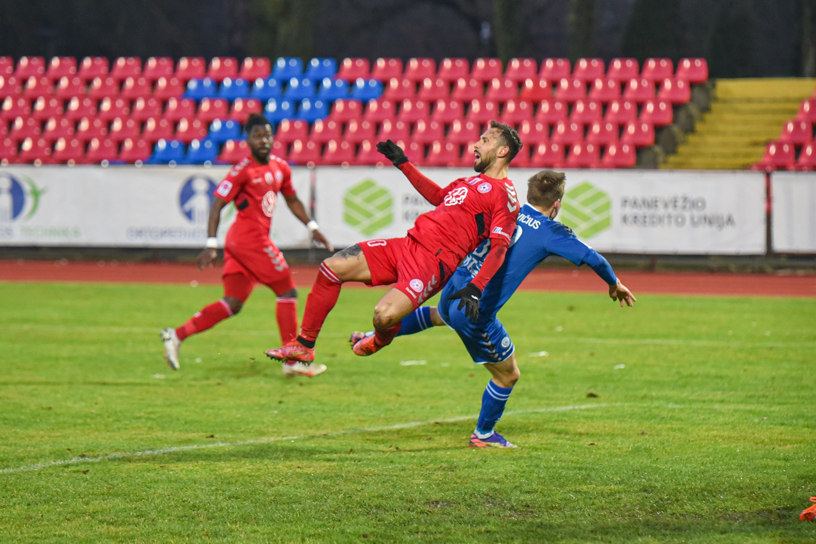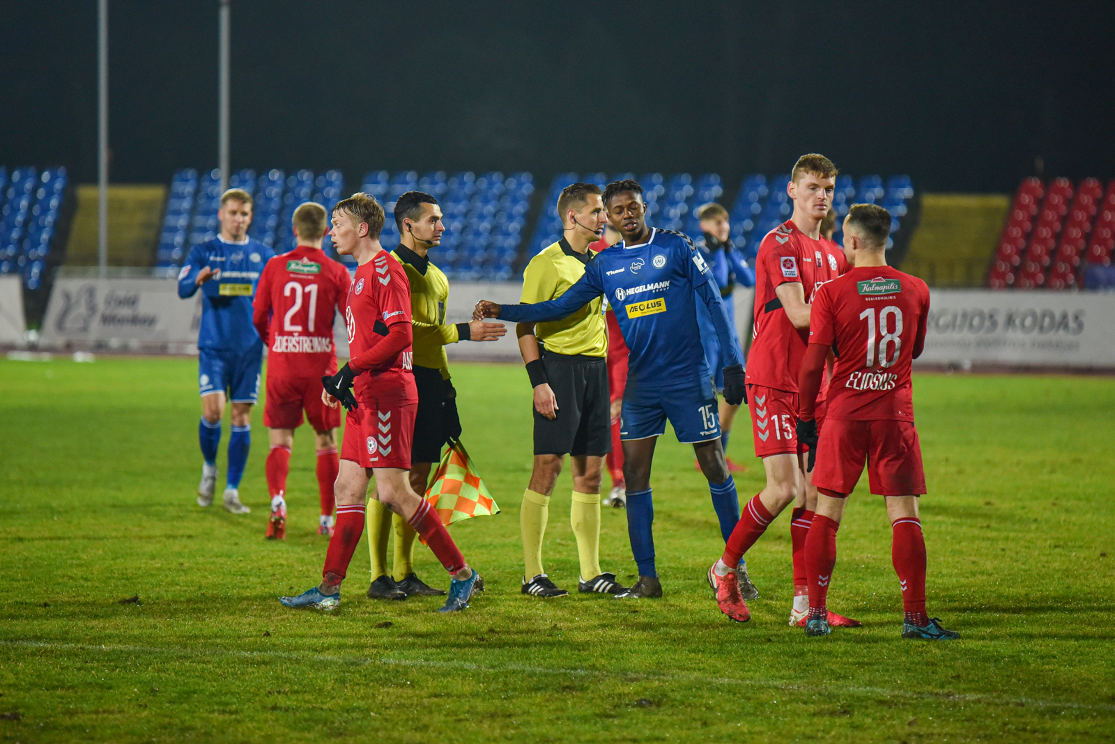 Tačiau tai nebuvo pirmojo kėlinio pabaiga. J. Sarpongas įspūdingo grožio smūgiu per pridėtą laiką vėl išvedė Aukštaitijos klubą į priekį – 2:1.