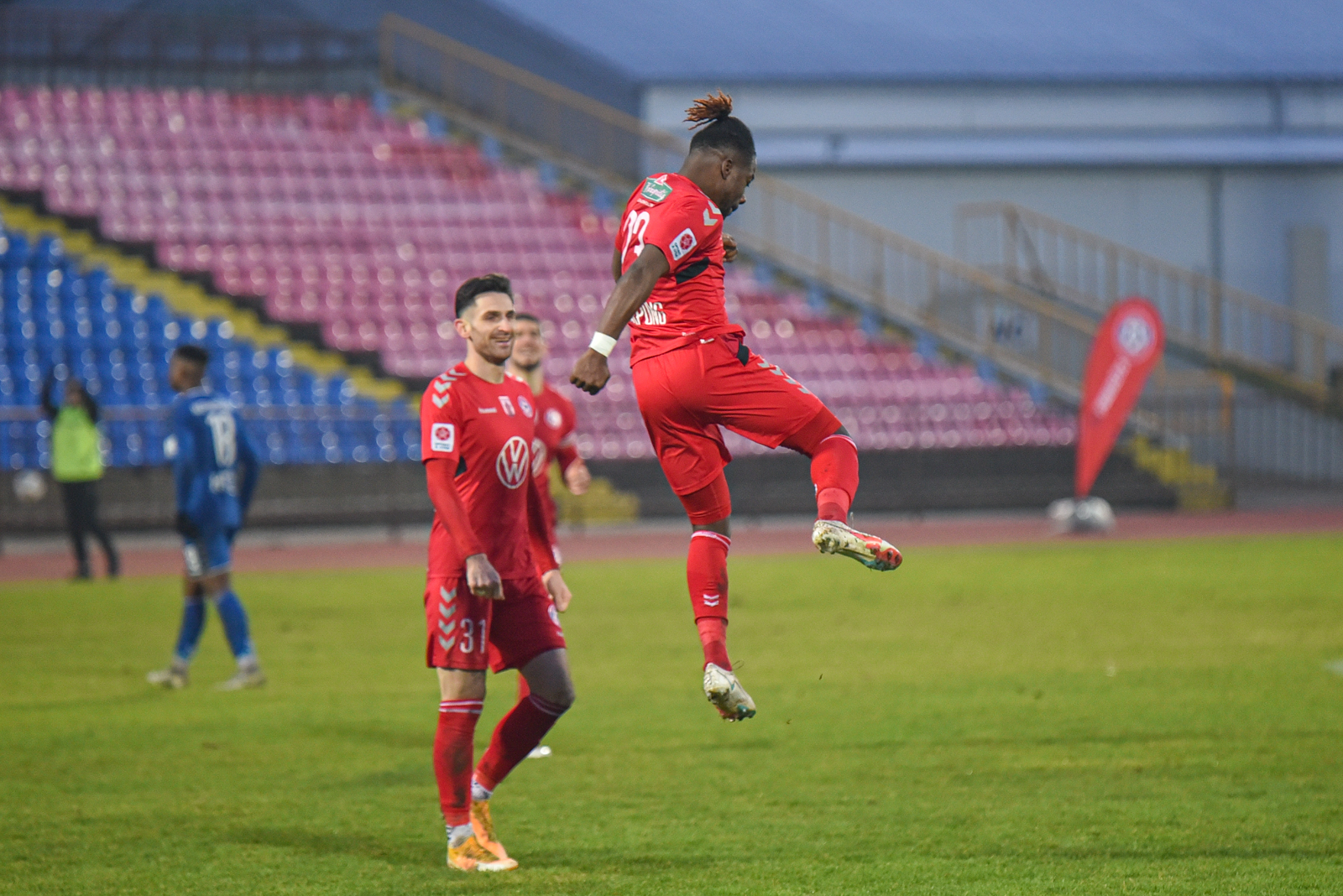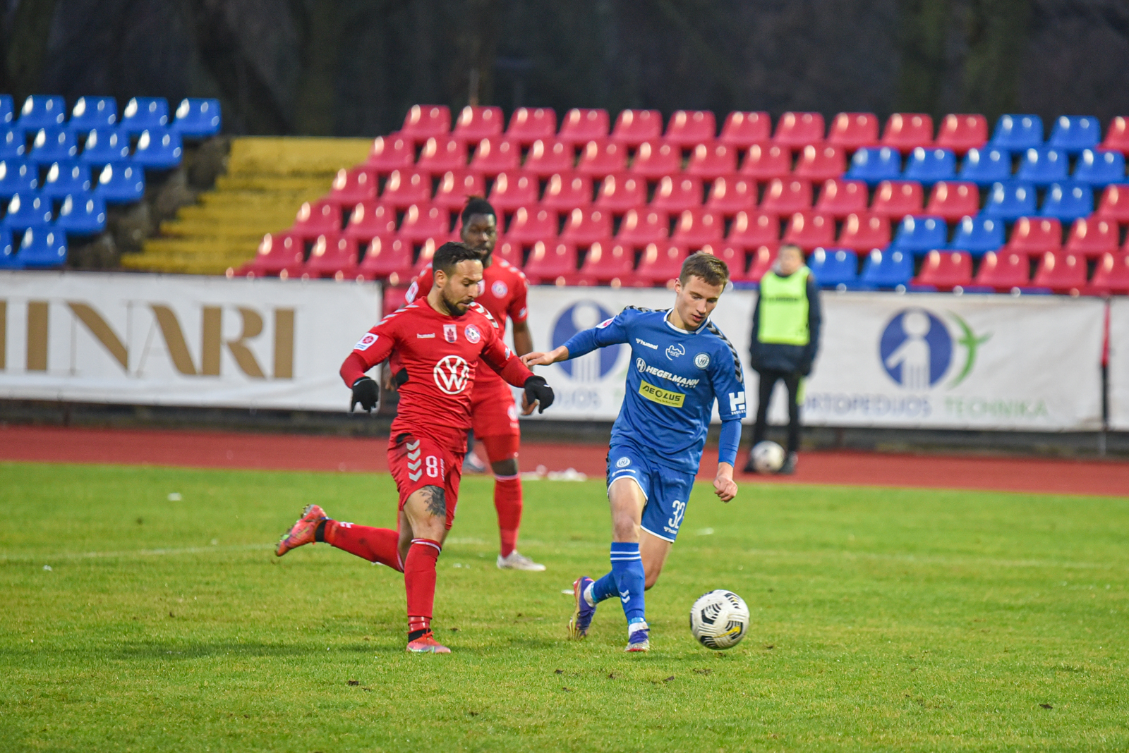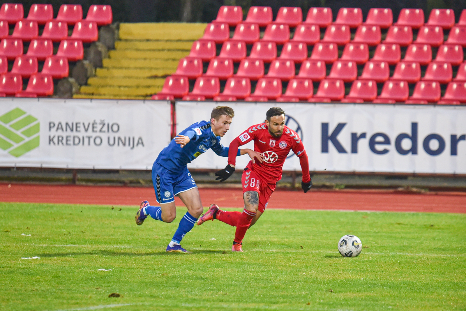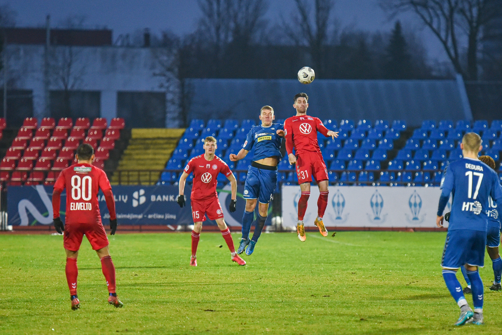 Tačiau tai nebuvo pirmojo kėlinio pabaiga. J. Sarpongas įspūdingo grožio smūgiu per pridėtą laiką vėl išvedė Aukštaitijos klubą į priekį – 2:1.