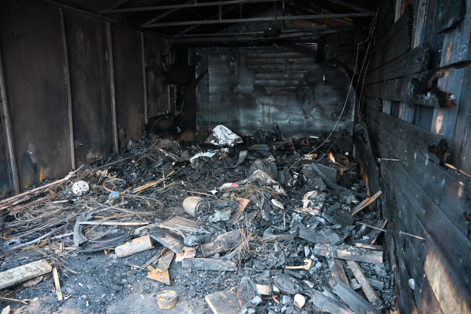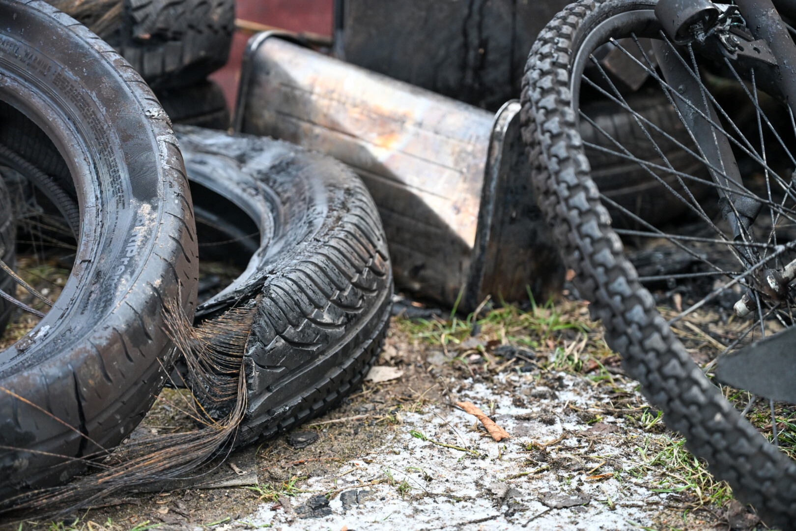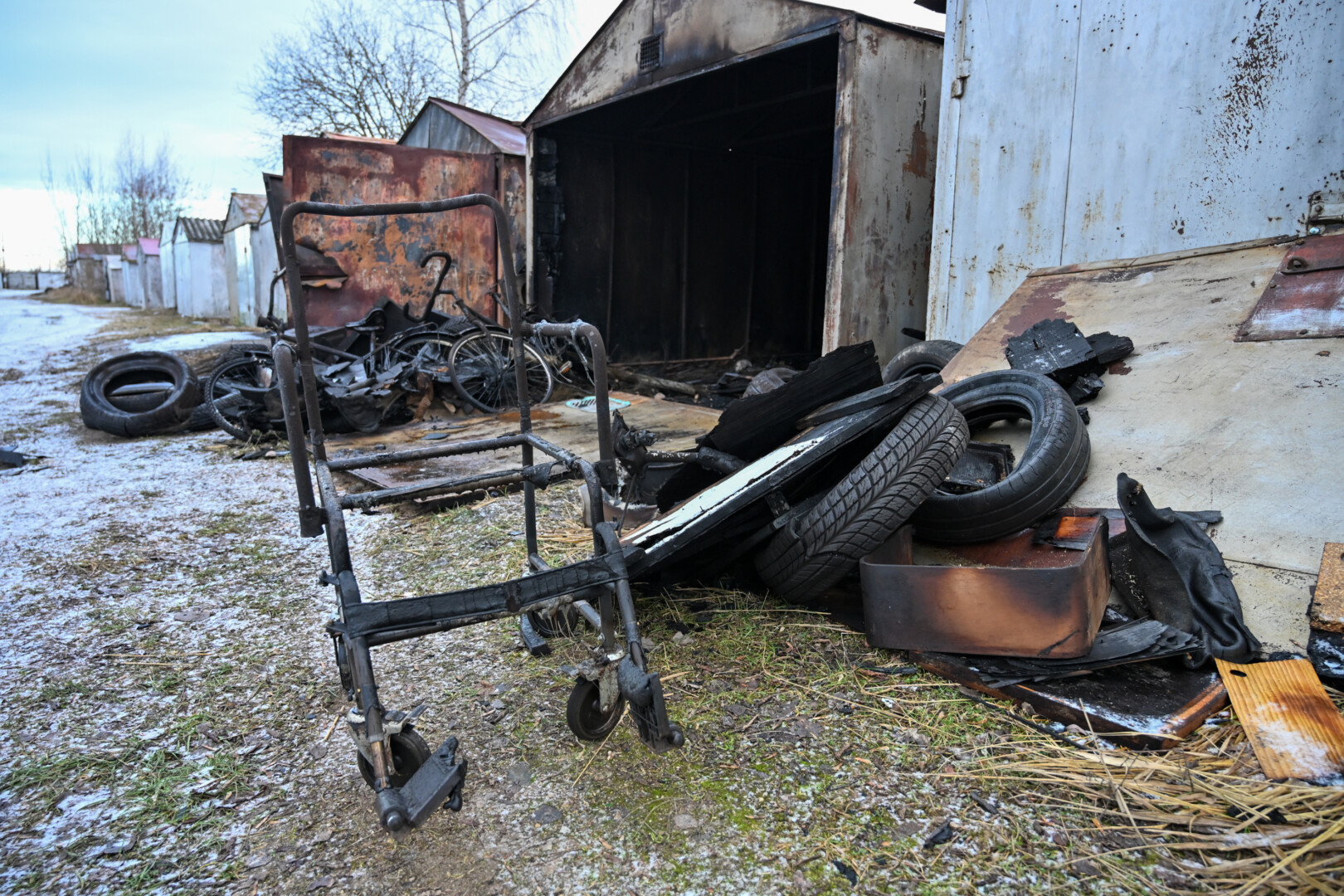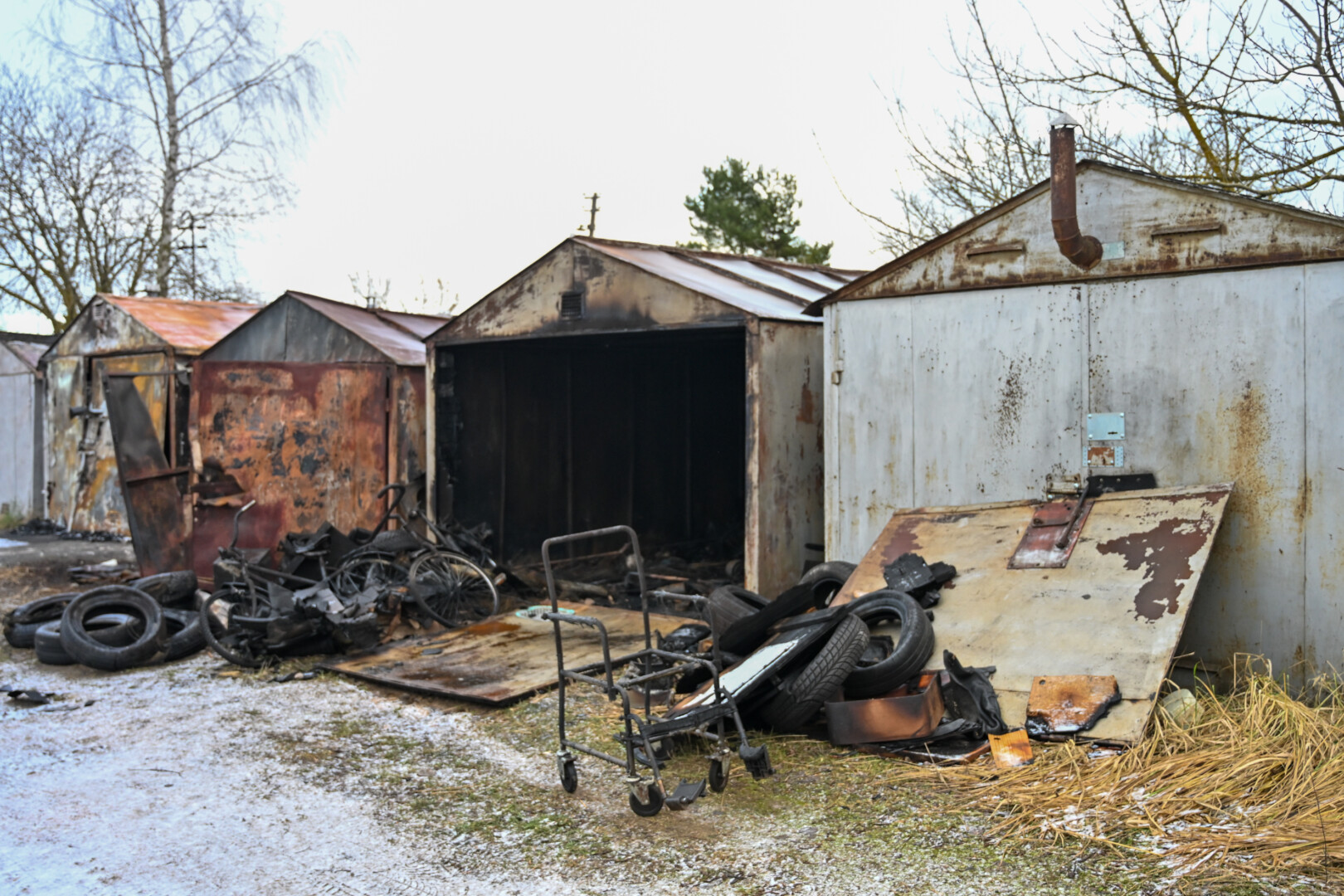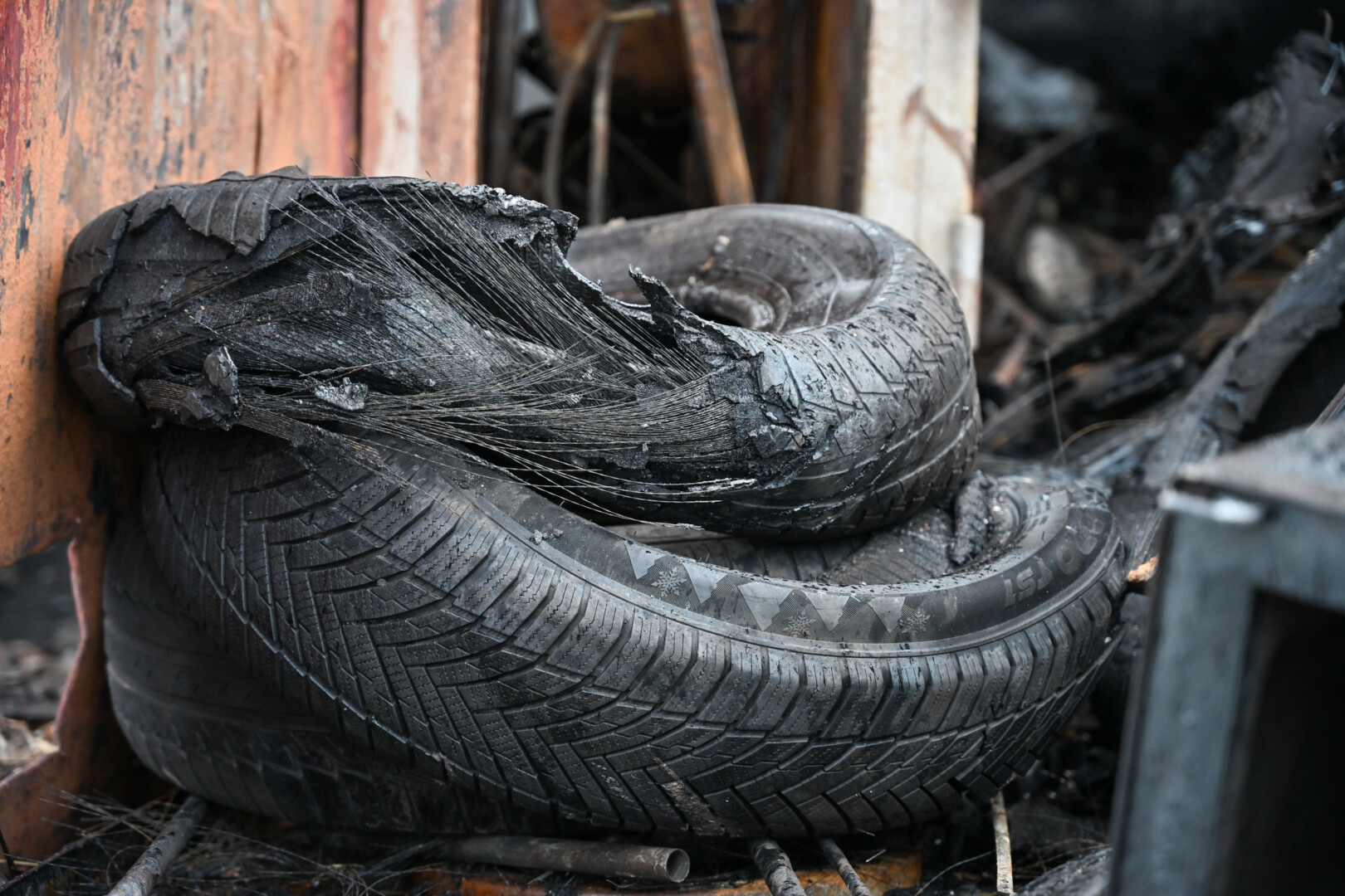 Per gaisrą visiškai išdegė juose buvę daiktai, automobilių dalys, padangos.