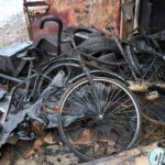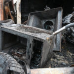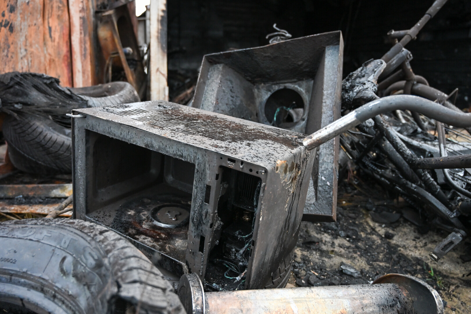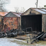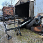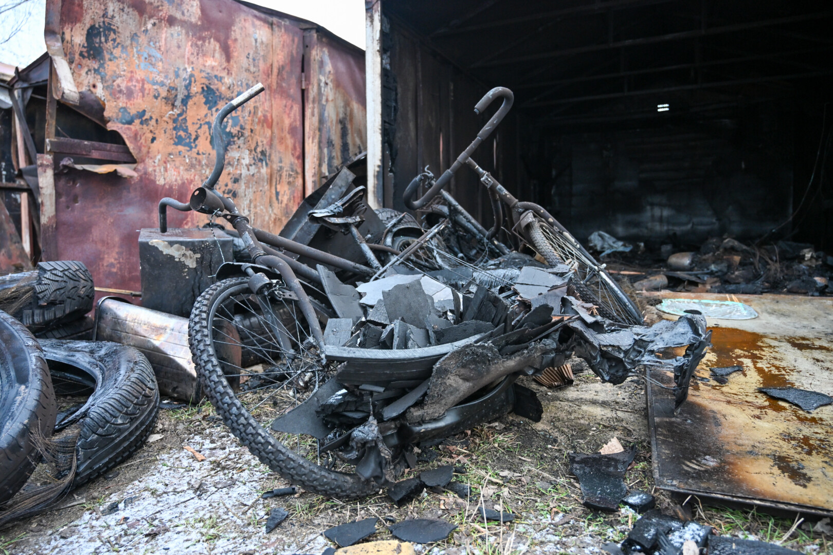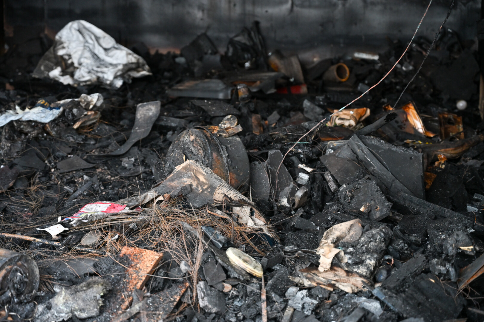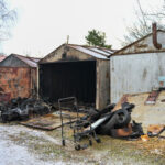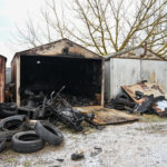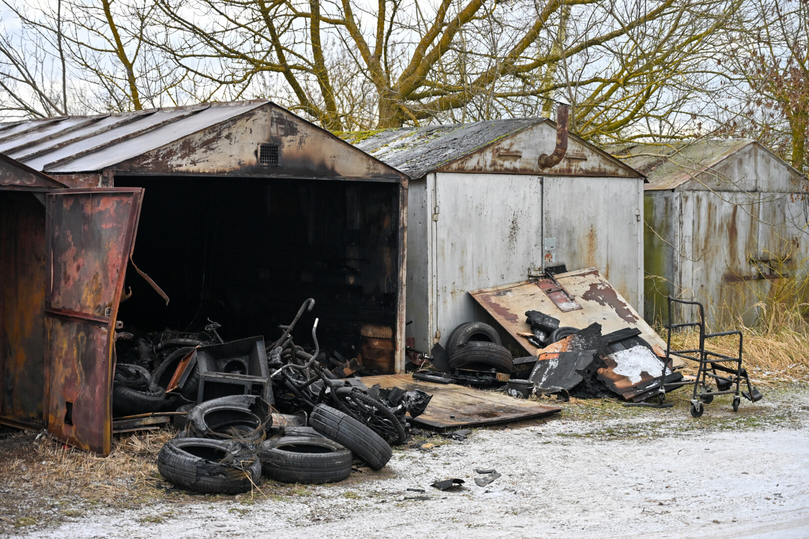 Per gaisrą visiškai išdegė juose buvę daiktai, automobilių dalys, padangos.