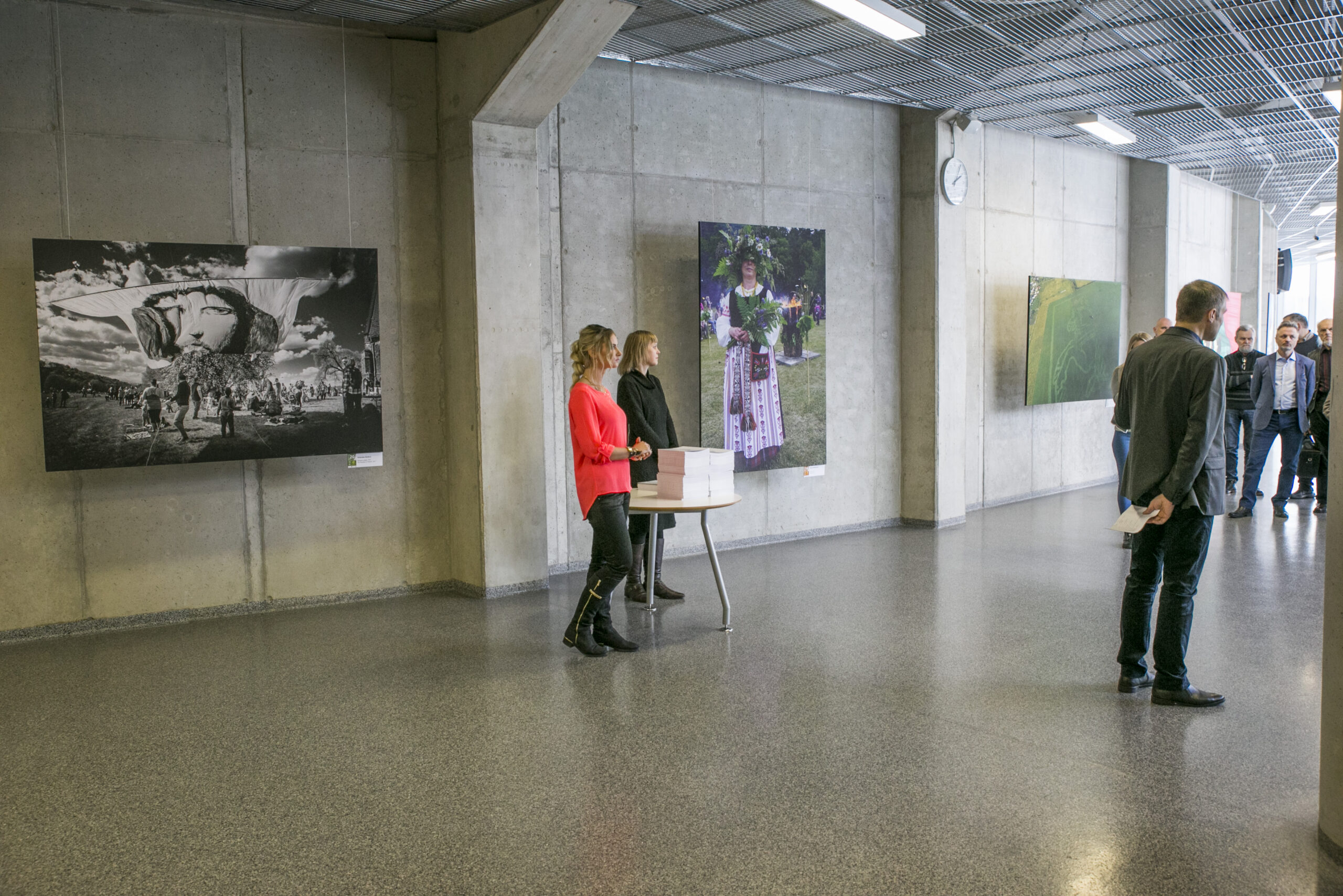 Praėjusią savaitę 16 parodos nuotraukų buvo pristatyta „Cido“ arenoje. Čia iškabintos vieno kvadratinio metro ir didesnio ploto fotografijos. O 2 metrų dydžio darbui nerasta jokios vietos ir kolekcijos sudarytojas ją pritvirtino persuktą.