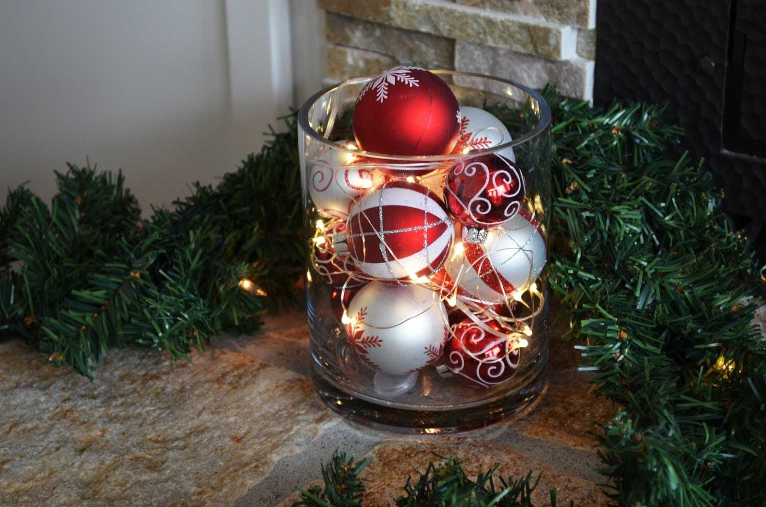 Galiausiai kalėdinę vazą papildykite šviečiančių lempučių girlianda, kuri suteiks dekoracijai jaukumo.