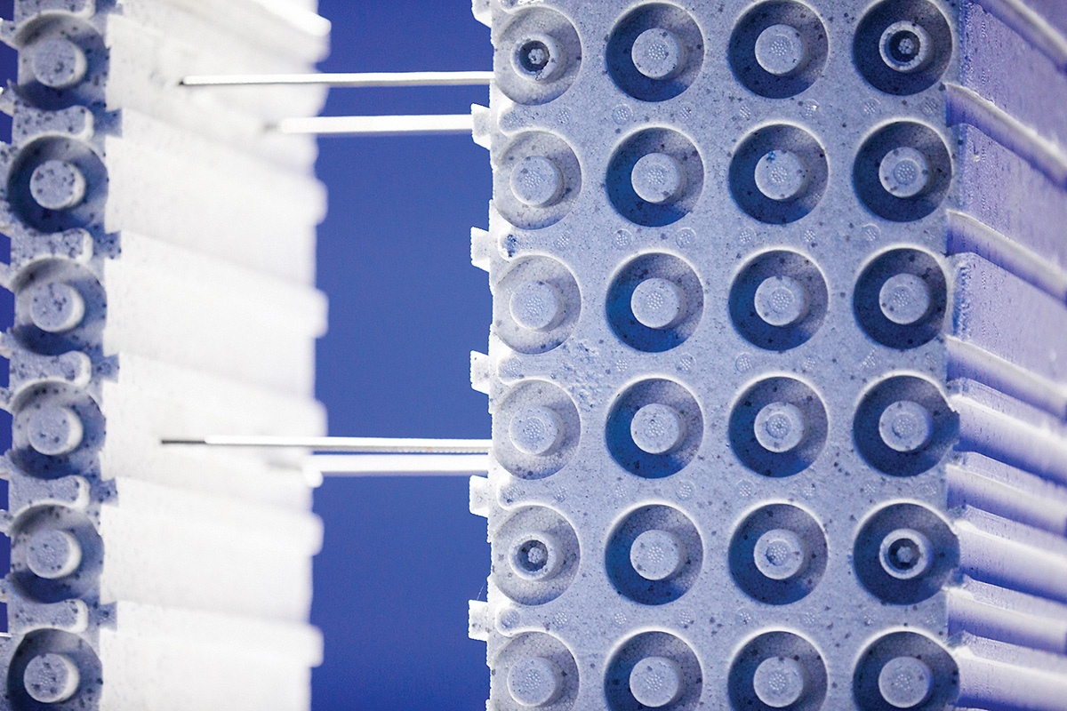 Statant pastatus iš polistireninio putplasčio blokelių nereikalinga papildoma kėlimo įranga, kranas. Betonavimui užtenka betono siurblio. O darbų sparta tikrai didelė – 1 kv. metro sienai sumontuoti užtenka 15 minučių. Šie blokeliai lengvai eksploatuojami – jie tvirtinami vienas ant kito ir vėliau į tarpus užpilamas betonas.