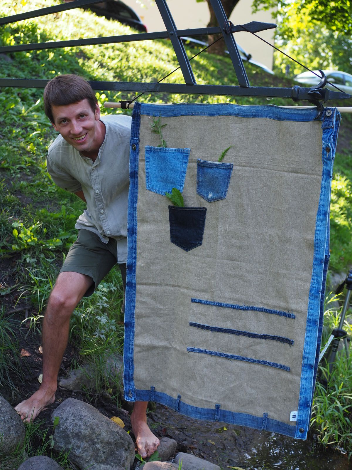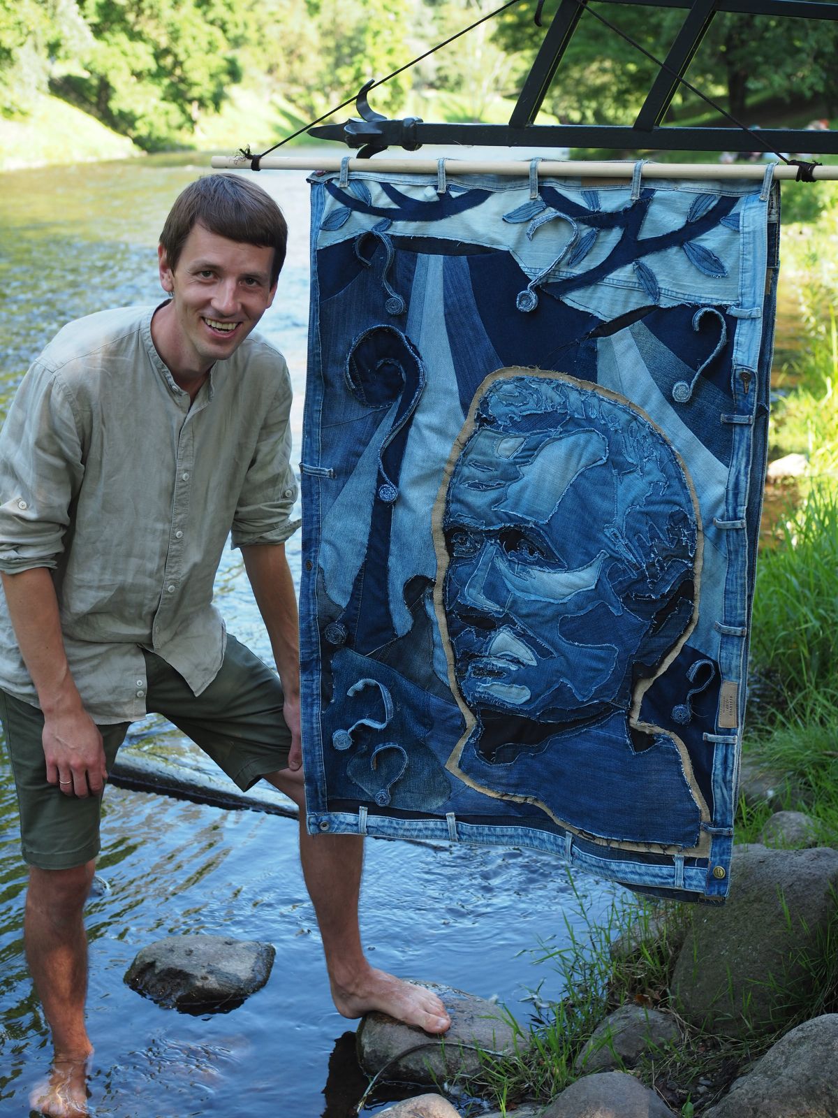 „J. A. Pabrėža savo veikloje meistriškai jungė mokslo pasiekimus, liaudies žinias, meną bei tikėjimą. Studijavęs ir botaniką, ir mediciną, ir teologiją, jis vėliau visa tai pasitelkdavo gydydamas parapijiečius. Taip pelnė jų dėkingumą ir pagarbą. Džinsai, iš kurių kūrėme atvaizdą – puikus įrodymas, kaip per du šimtus metų sunyko tamprus žmogaus ir gamtos ryšys. Išsibalansavome.
