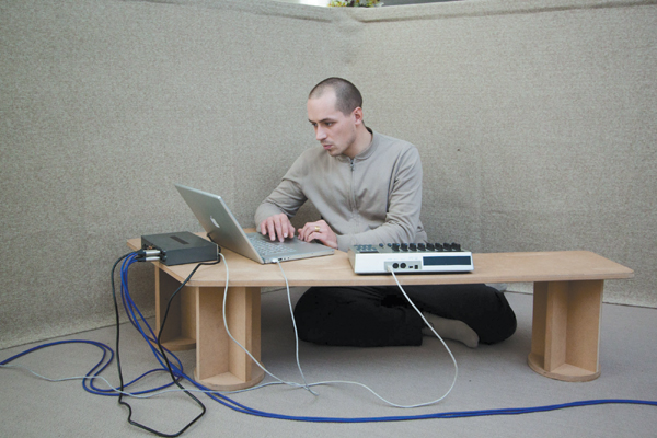 Viduryje nedidelės salės ratu sustatytos drobe dengtos plokštės, o jų viduryje paklotas kūno spalvos kilimas. Ant suolelio stovi kompiuteris, šalia – drobe aptraukti garsintuvai bei trys nedidukės kėdės. Į tokią mistinę erdvę savitas menininkas Andrius Rugys kviečia klausytojus atitrūkti nuo rutinos, įtampos, streso ir klausantis įvairiausių garsų pakeliauti po mišką, pajusti pajūrio smėlį po kojomis ar tiesiog pabūti gaudžiančių aparatų apsuptyje.