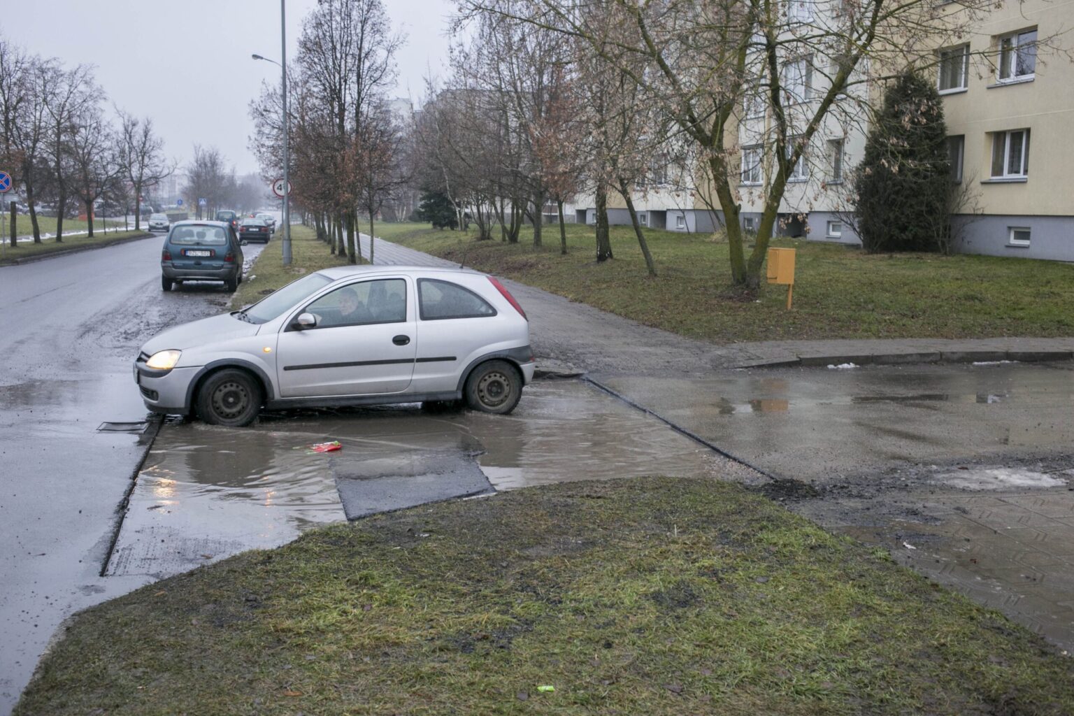 „Rankomis ištaisyti, kas pridaryta, būtų per sunku. „Kauno tiltai“ žada atsivežti techniką, išsiurbti vandenį ir pakloti asfaltą“, – tikina inžinierius.