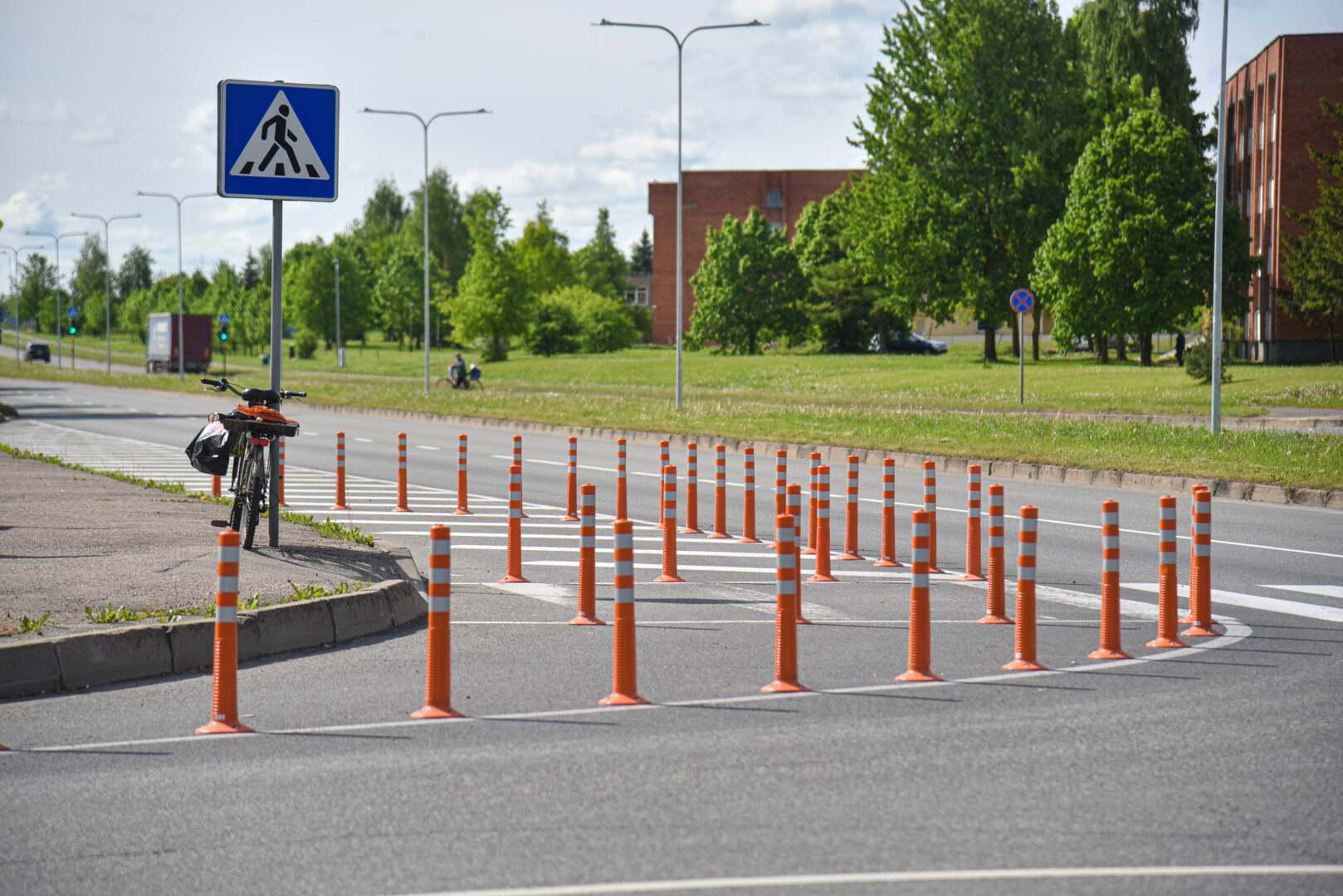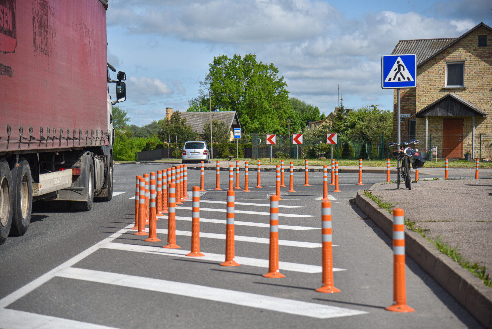 Panevėžyje yra ir daugiau taip siaurintų gatvių, tik ne visur šiuo tikslu panaudoti ryškiaspalviai stulpeliai, kai kur pakako horizontalaus ženklinimo.