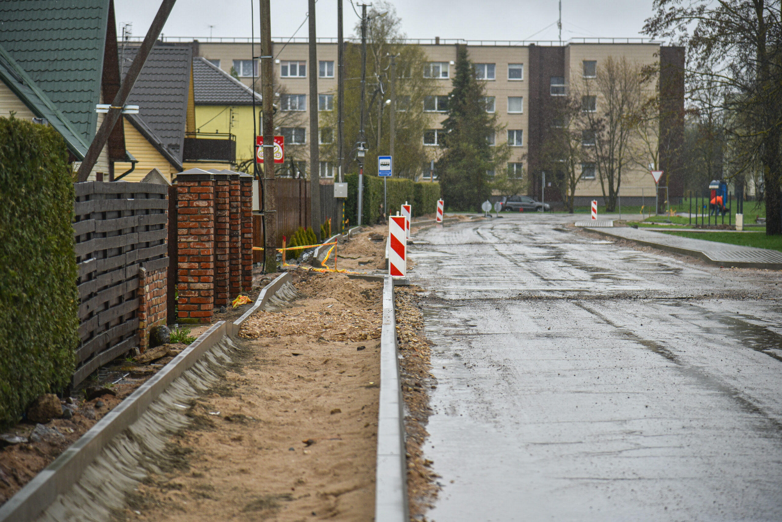 „Darbai jau pradėti. Kaip ir numatyta sutartyje, jie bus baigti šių metų rudenį. Nemažai darbų jau baigta, liko įrengti šaligatvį ir sutvarkyti gatvės dangą“, – aiškino P. Petkevičius.