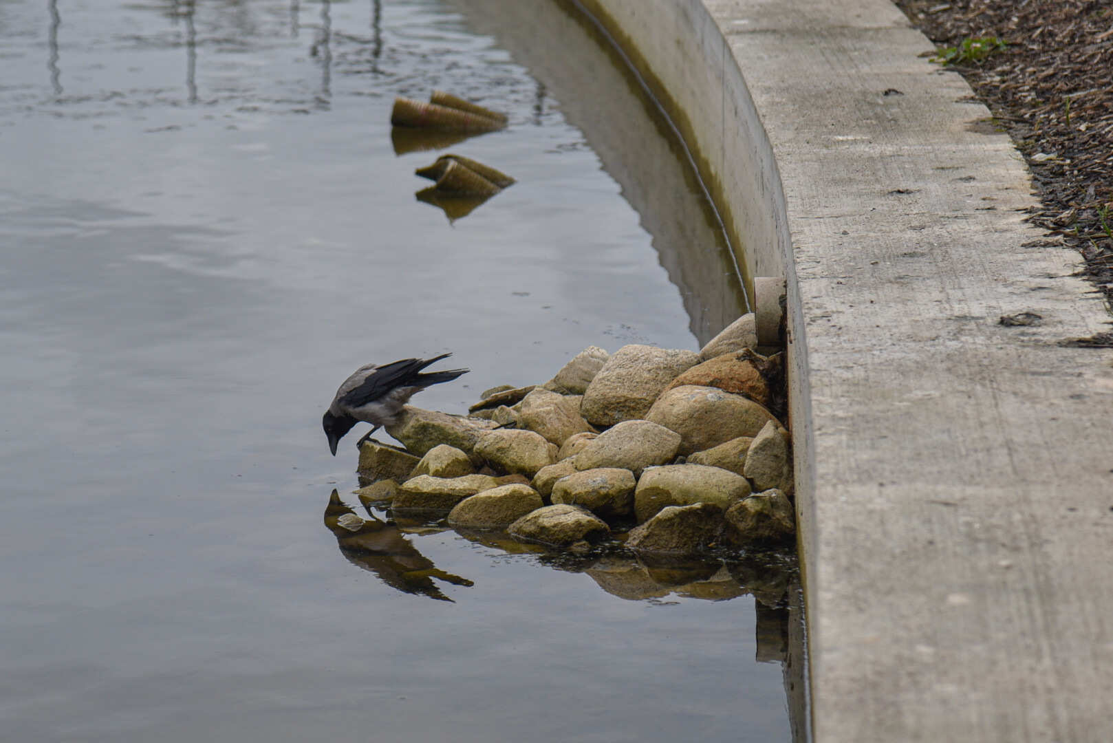 „Senvagėje vanduo taip nuslūgęs, kad kyšo kanalizacijos šuliniai, vamzdžiai, net vėžio skulptūrą laikantys cemento blokai matyti. Medinis tiltelis, vedantis fontano link, tiesiog kybo ore“, – pasakojo Viktoras.