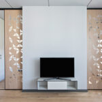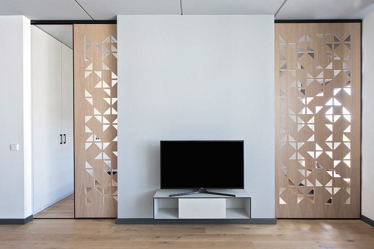 Pasitaiko, kad „pereinamose“ erdvėse trūksta naudingų sienos plotų, pavyzdžiui, nėra kur pastatyti televizoriaus ar komodos, nes visą perimetrą užima langai ir durys. Tokiu atveju reikia mąstyti kūrybiškai – vaizdo aparatūrai skirtą baldą nebūtina statyti palei sieną. Galima erdvės centre suprojektuoti baldą iki lubų su jame įrengtu televizoriumi. Toks sprendimas taip pat gali padėti atskirti erdves, pavyzdžiui, virtuvę nuo svetainės.