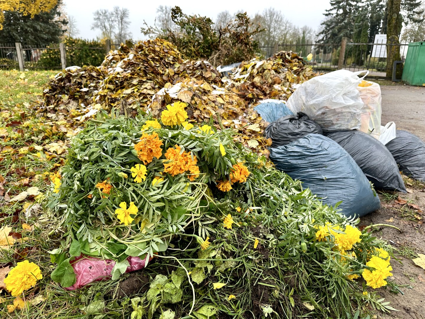 Į žaliųjų atliekų konteinerius galima mesti nužydėjusias gėles, augalus, sugrėbtus lapus, smulkias medžių, krūmų šakeles, žoles.