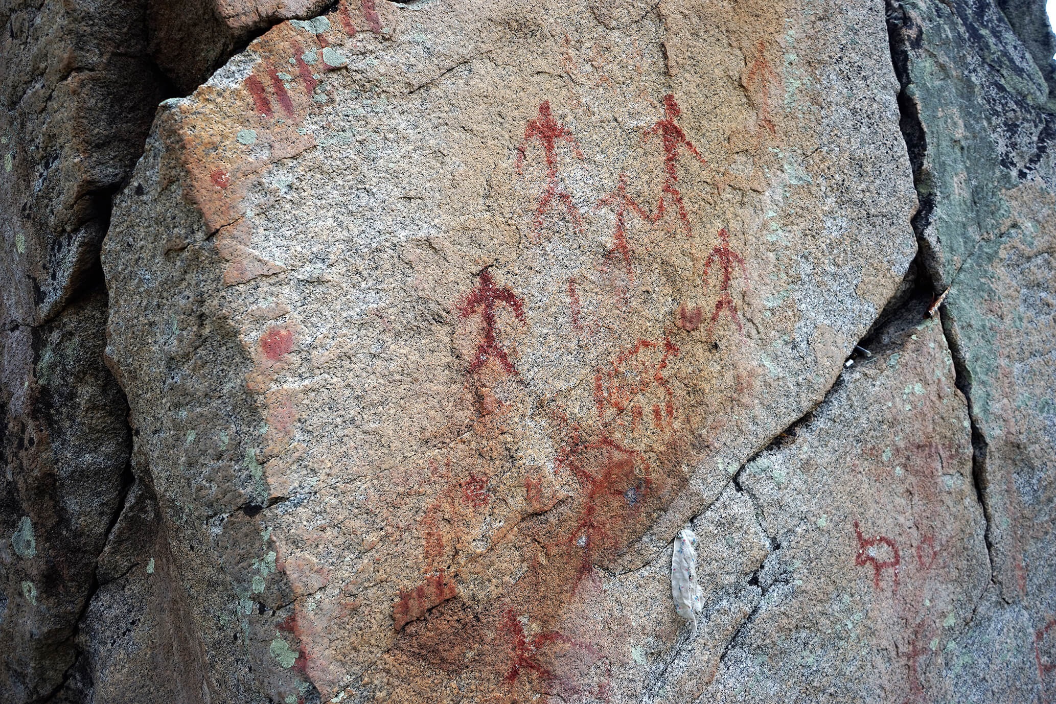 Uolose palikti piešiniai datuojami labai skirtingai: vieni čia – dar iš neolito laikų, kiti atsiradę jau viduramžiais. Įsivaizduojantiems juos ryškiaspalvių figūrų pavidalais tektų kiek nusivilti. Piešinių išsaugojimu daug metų nesirūpinta, net priešingai: jie siejasi su šamanizmu, o šis sovietmečiu buvo draudžiamas, tad ir uolų piešinių konservuoti nebuvo svarbu. Šiandien šios srities tyrinėtojams rasti piešinių dažnai būna itin sunku – tikslios jų koordinatės nebūna žinomos. Net ir atsidūrus reikiamoje vietoje neretai piešinį pastebėti nelengva. „Archeologai piešinius perskaito skirtingai. Būna, kad pastebi jį toje vietoje tik po dešimto karto. Čia reikia kalbėti ir apie mokslininko sėkmę“, – šypteli antropologas. Patys evenkai tiki, kad piešiniai nuolat keičiasi, gali čia pasislėpti, čia vėl pasirodyti ir perduoti vis skirtingą informaciją.