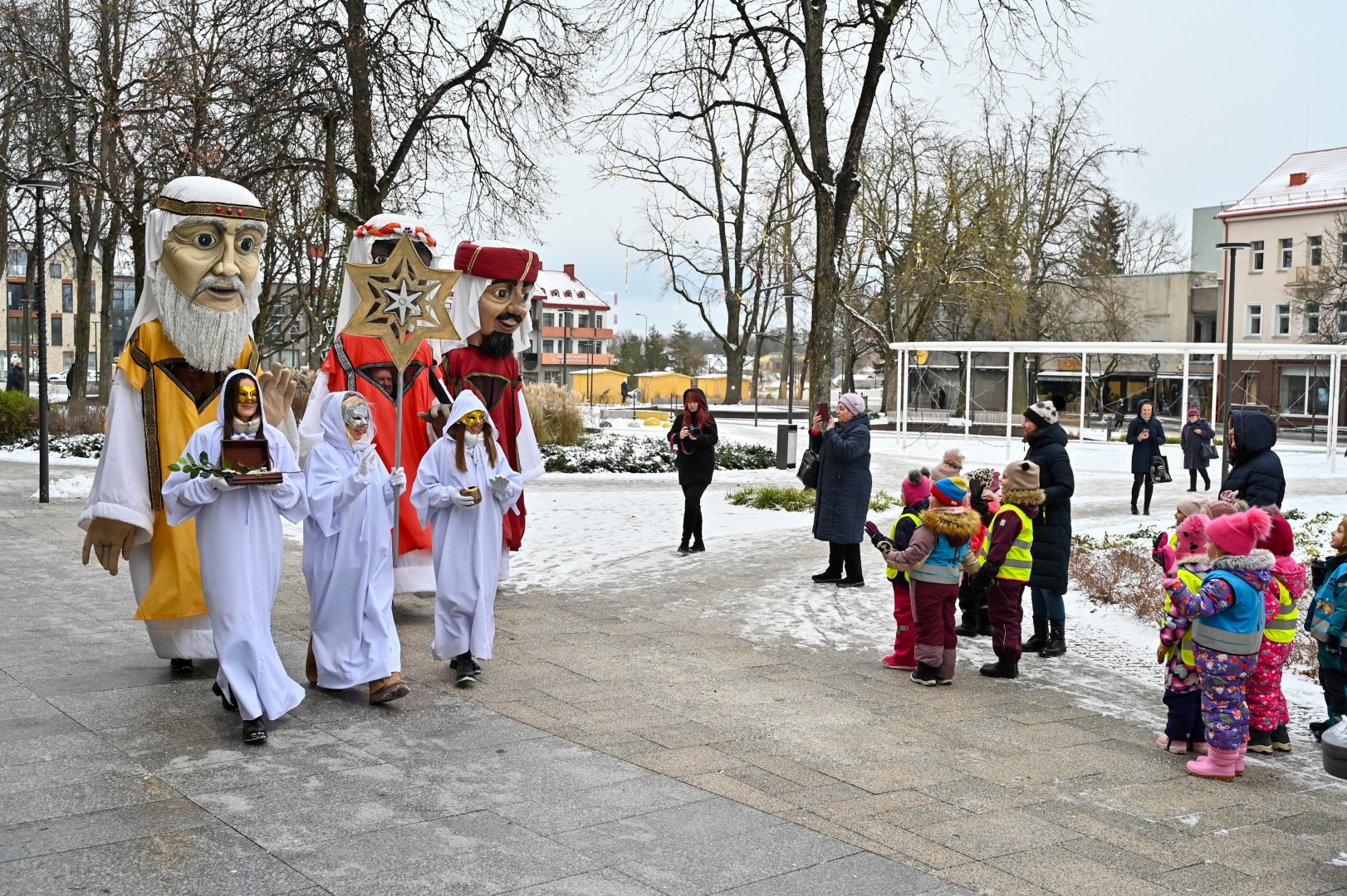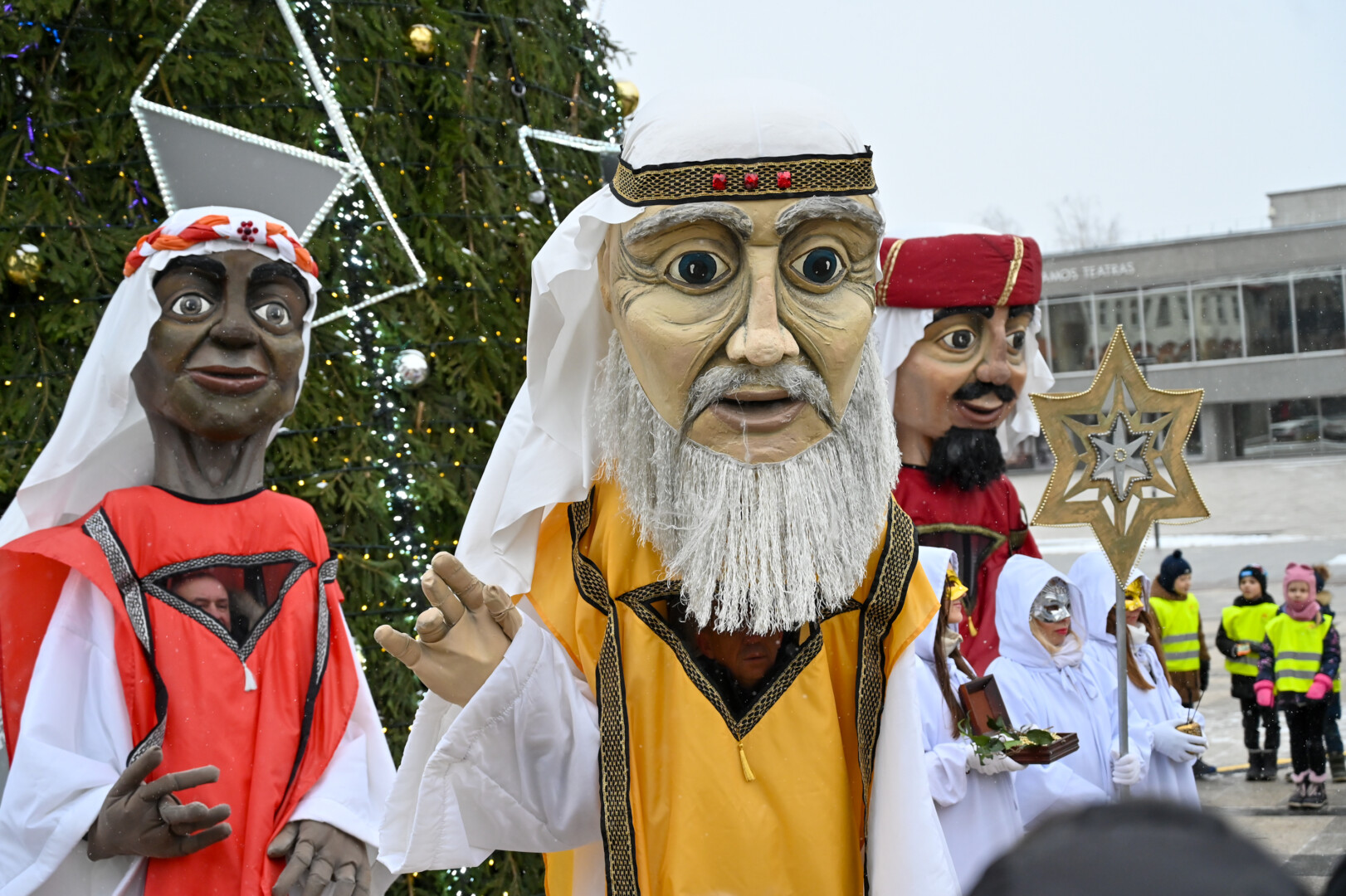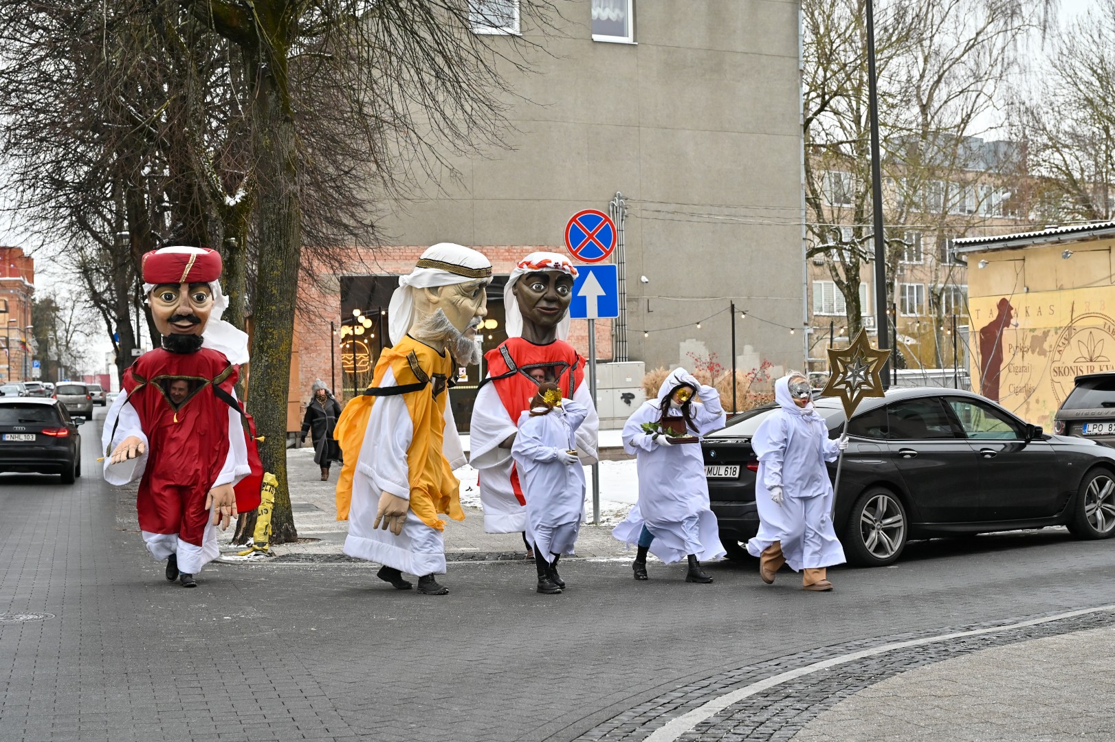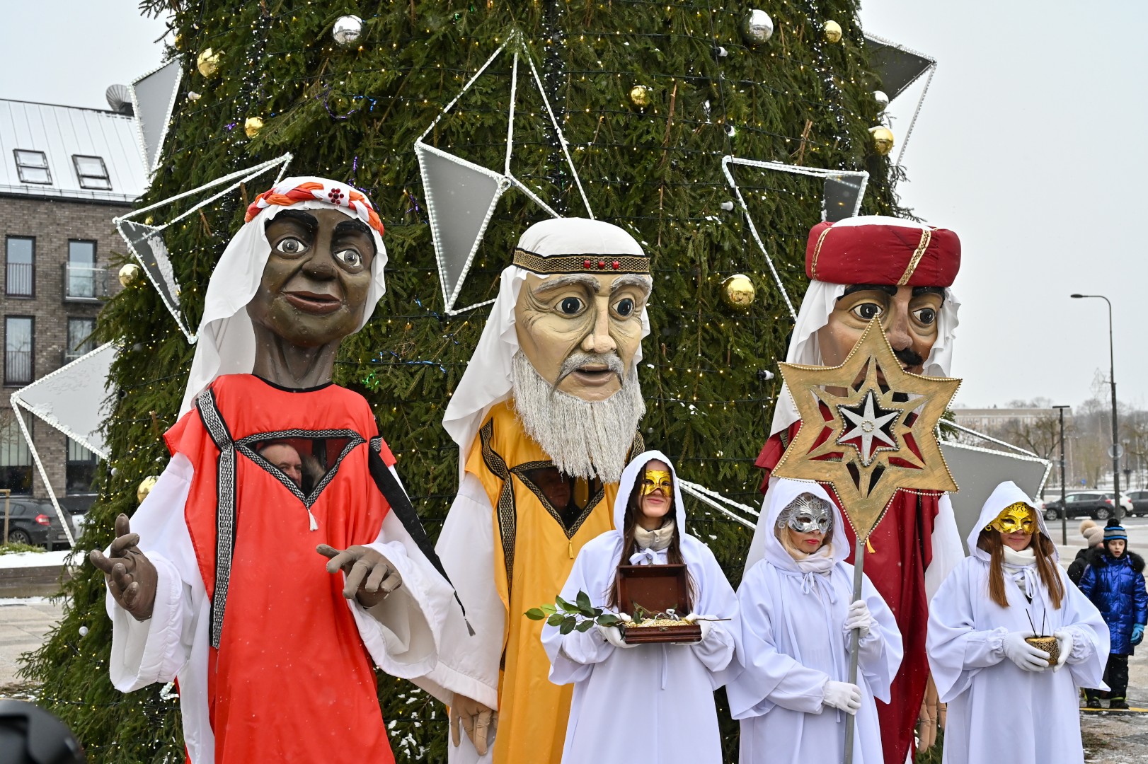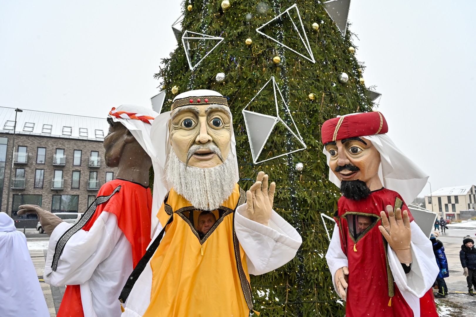 Puspenkto metro ūgio Trys Karaliai – Kasparas, Merkelis (Melchioras) ir Baltazaras – žingsniavo P. Puzino, Respublikos, Vasario 16-osios, Elektros gatvėmis sveikindami praeivius.